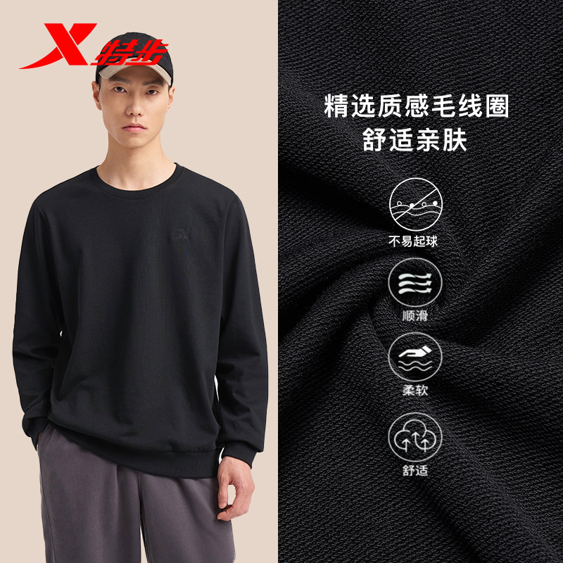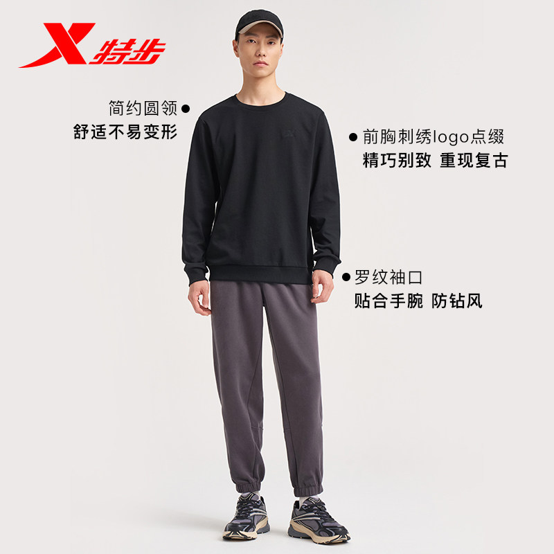 特步圆领卫衣男款2025秋季新款时尚潮流内搭长袖运动套头衫男装