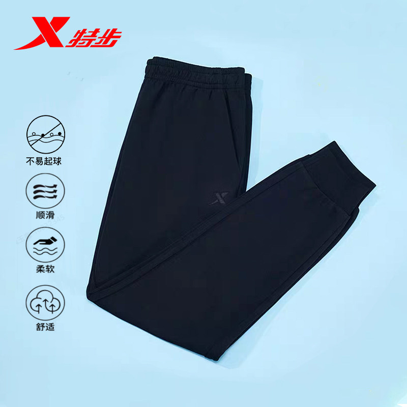 特步运动卫衣卫裤男款针织加绒保暖运动裤长裤圆领卫衣运动套头衫