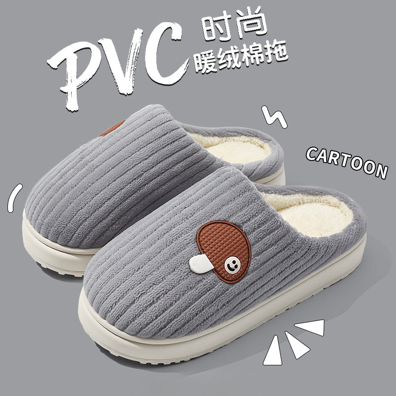 红豆踩屎感棉拖鞋女士秋冬季室内家居2025新款毛绒保暖情侣棉拖男
