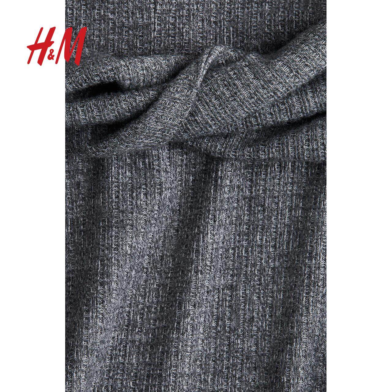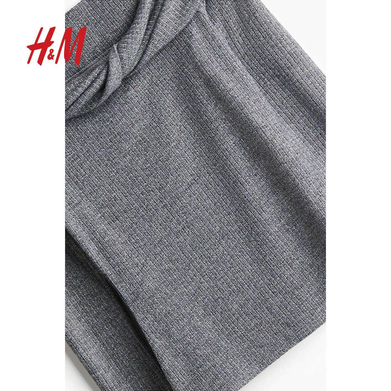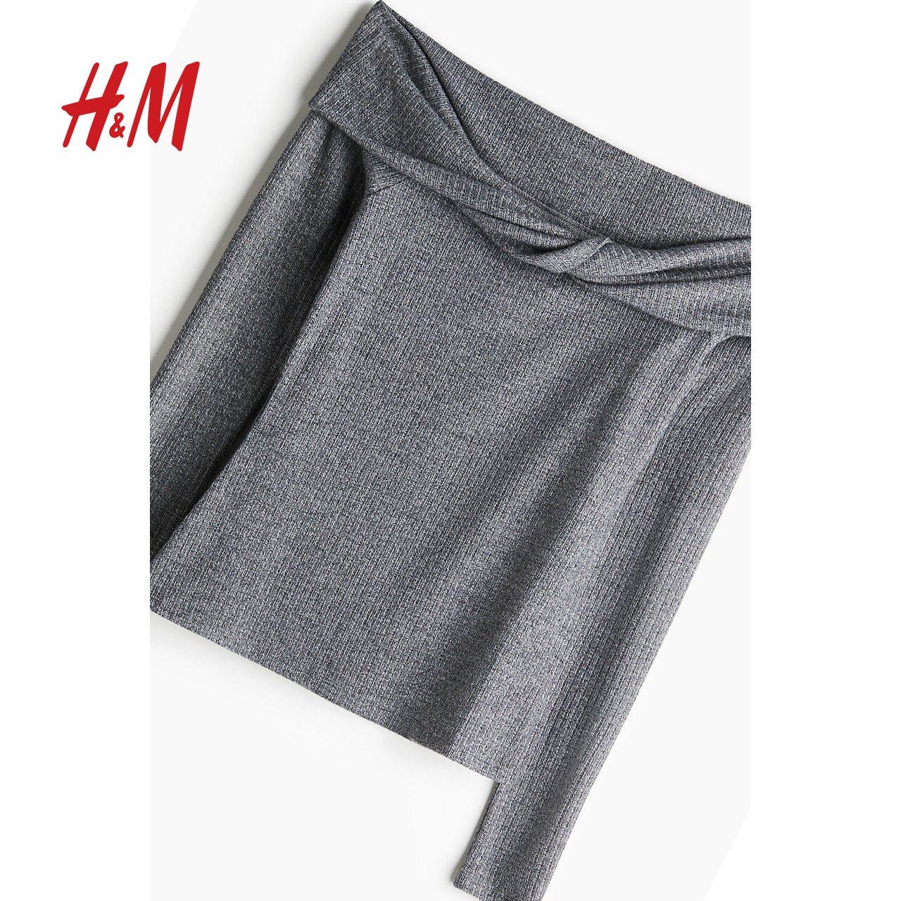 HM女装T恤冬季内搭打底衫修身长袖扭结领时尚罗纹露肩上衣1285299