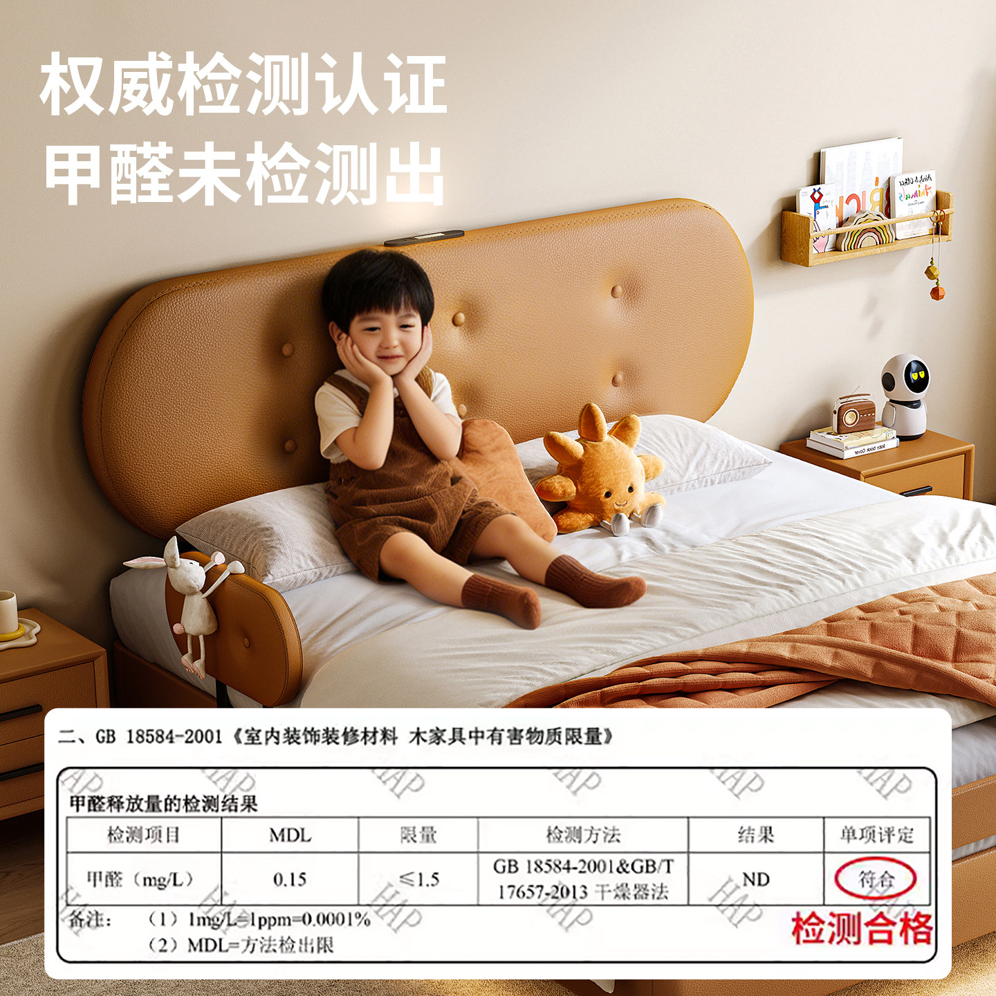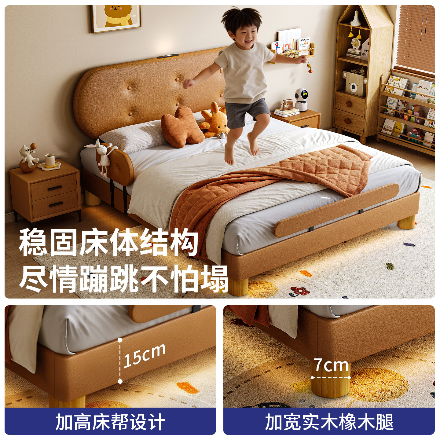 雅兰儿童实木床现代轻奢1.2m单人床卧室青少年卡通皮床男孩奇遇虎