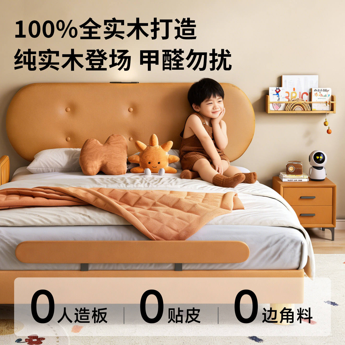 饼干实木儿童床男孩卧室床1.2米单人床小户型防护栏女孩公主床