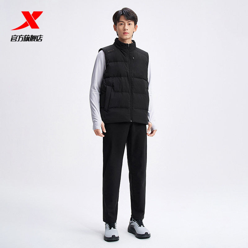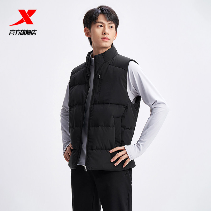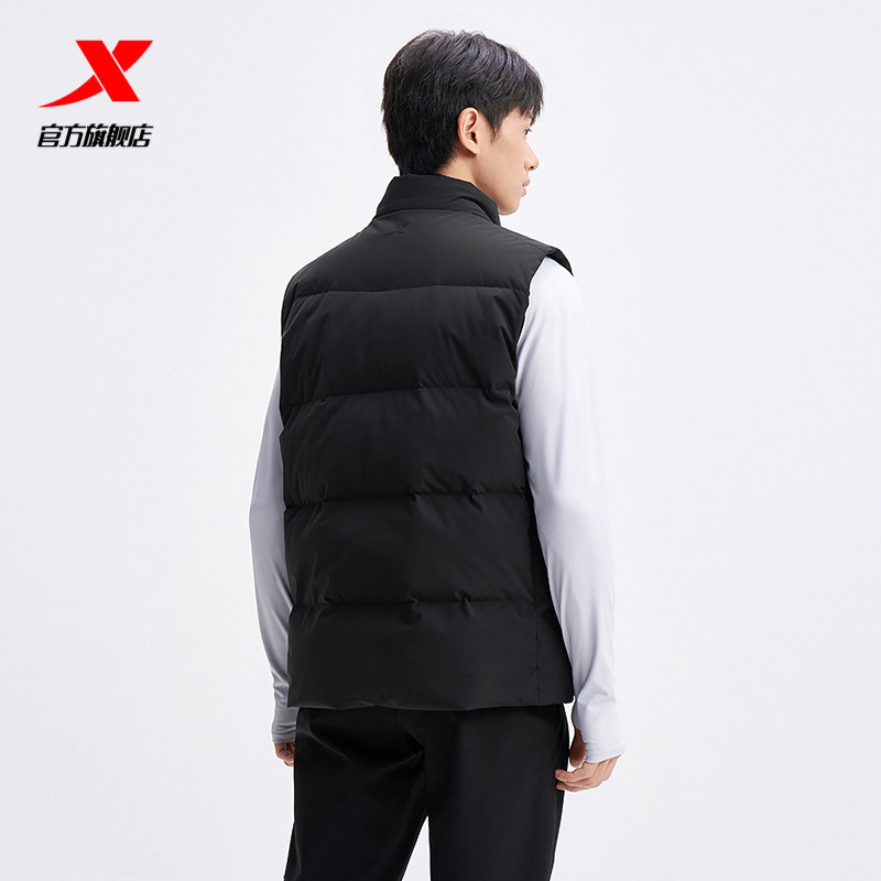 特步羽绒马甲男2025年冬季新款黑色男装运动保暖外套975429260402