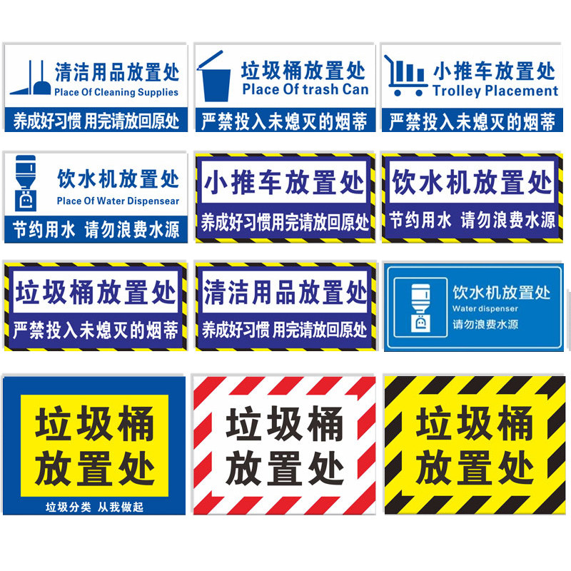 垃圾桶绿植花盆放置处磨砂地贴6S地面定位贴纸标识牌小推车摆放区饮水机放置区清洁用品存放处区域分类提示牌