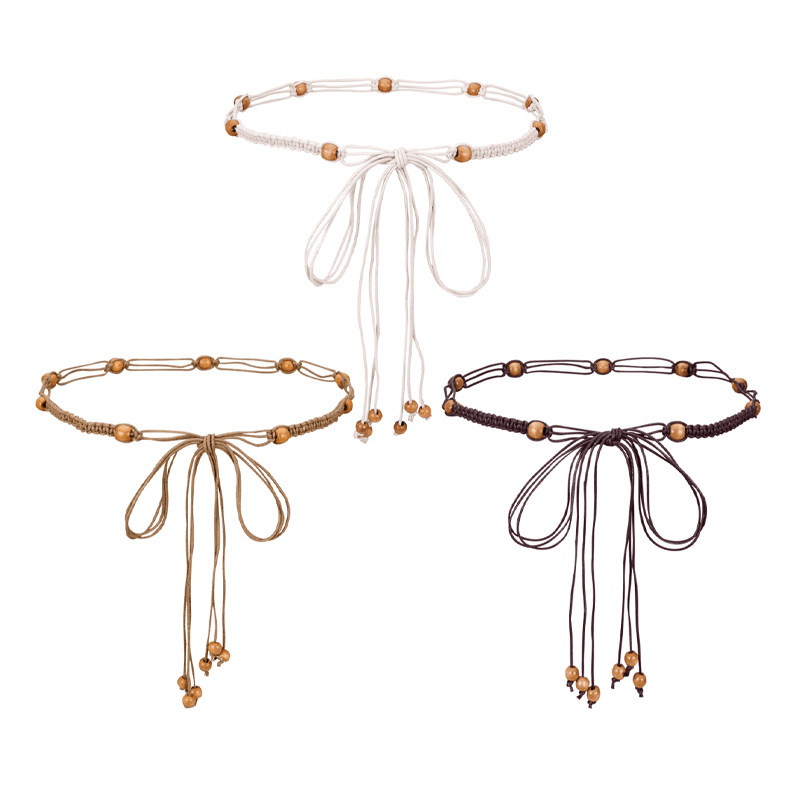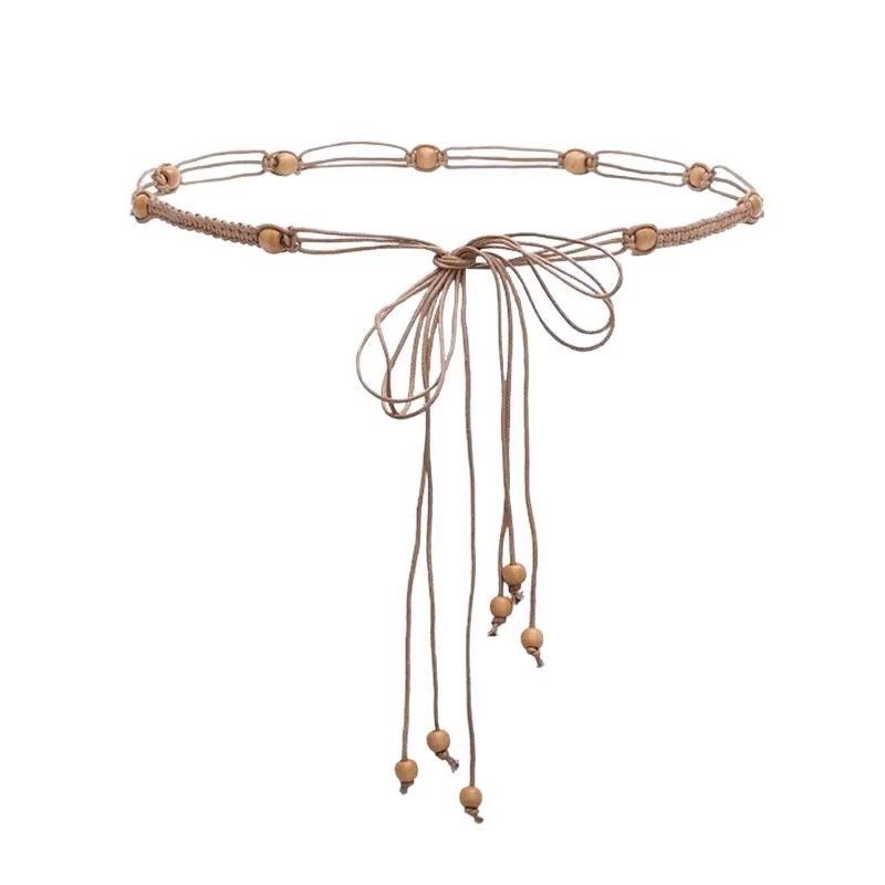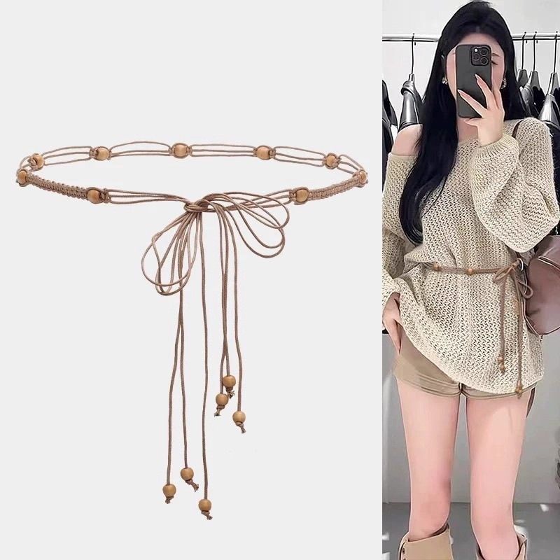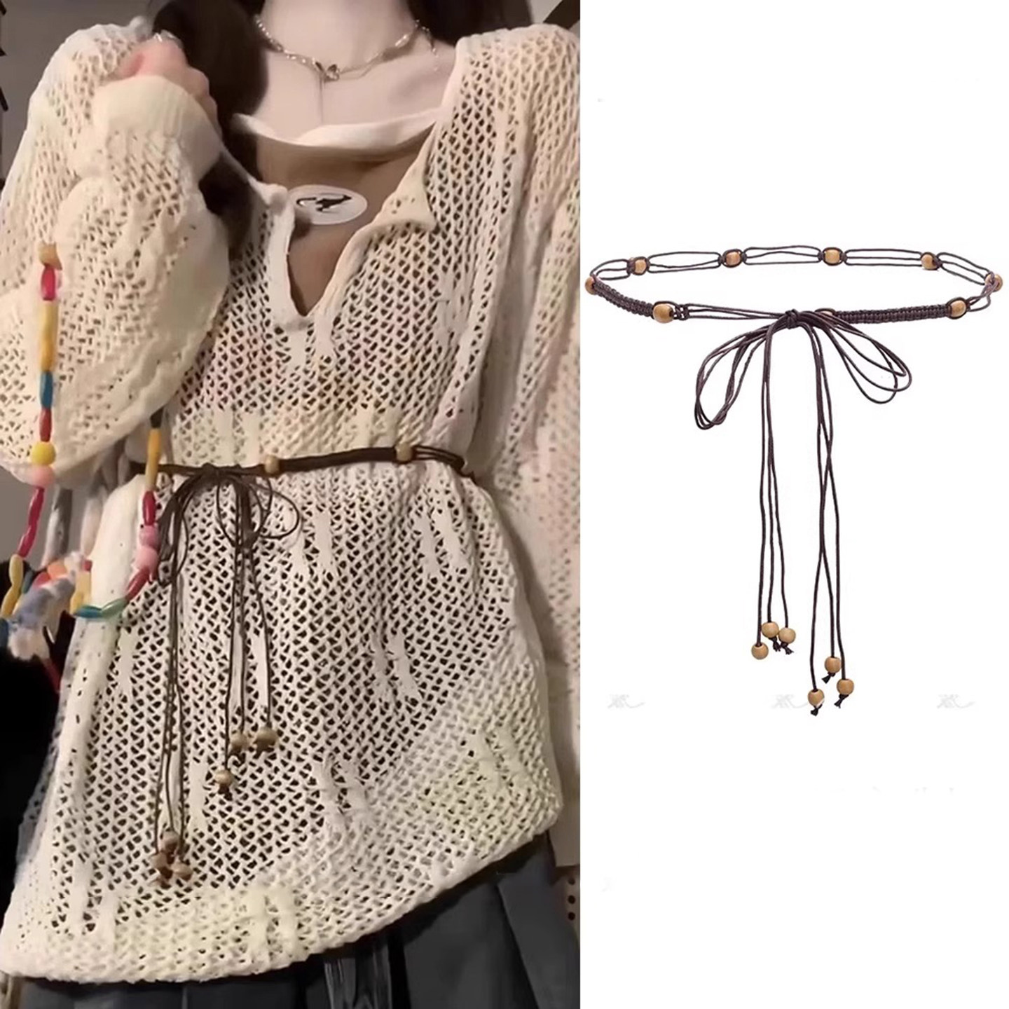 复古简约蜡绳腰带女款民族风编织带串珠腰绳百搭小众设计感细皮带