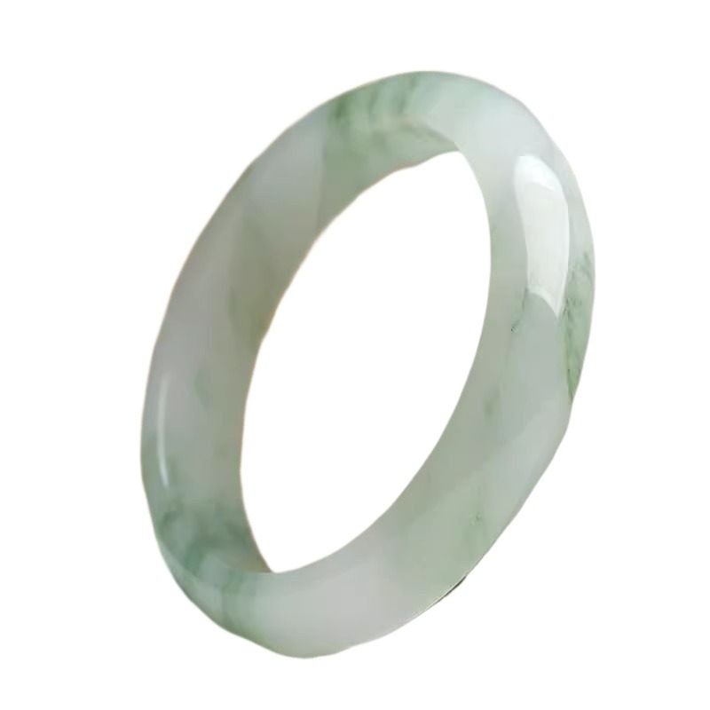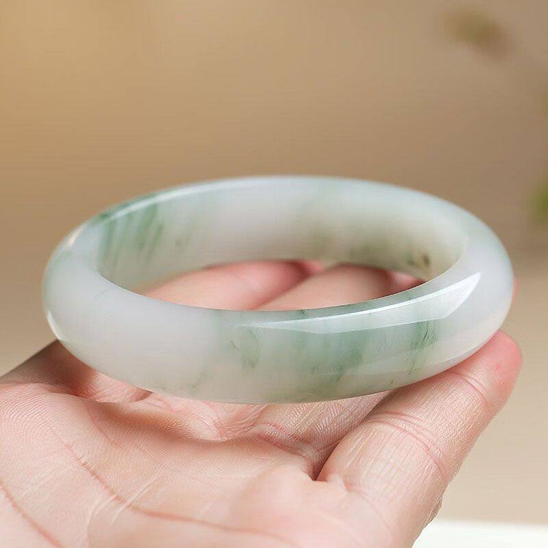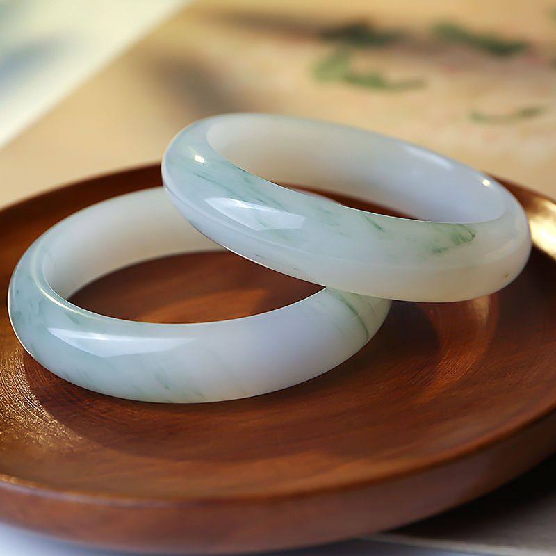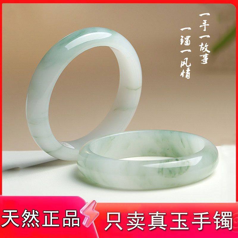 天然新疆天山翠雪翠飘花玉手镯女手镯正品玉石镯珠宝圈口圆条真玉