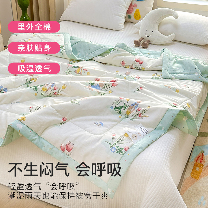 A类全棉夏凉被四件套纯棉空调被可机洗薄被子夏季单人夏被三件套4