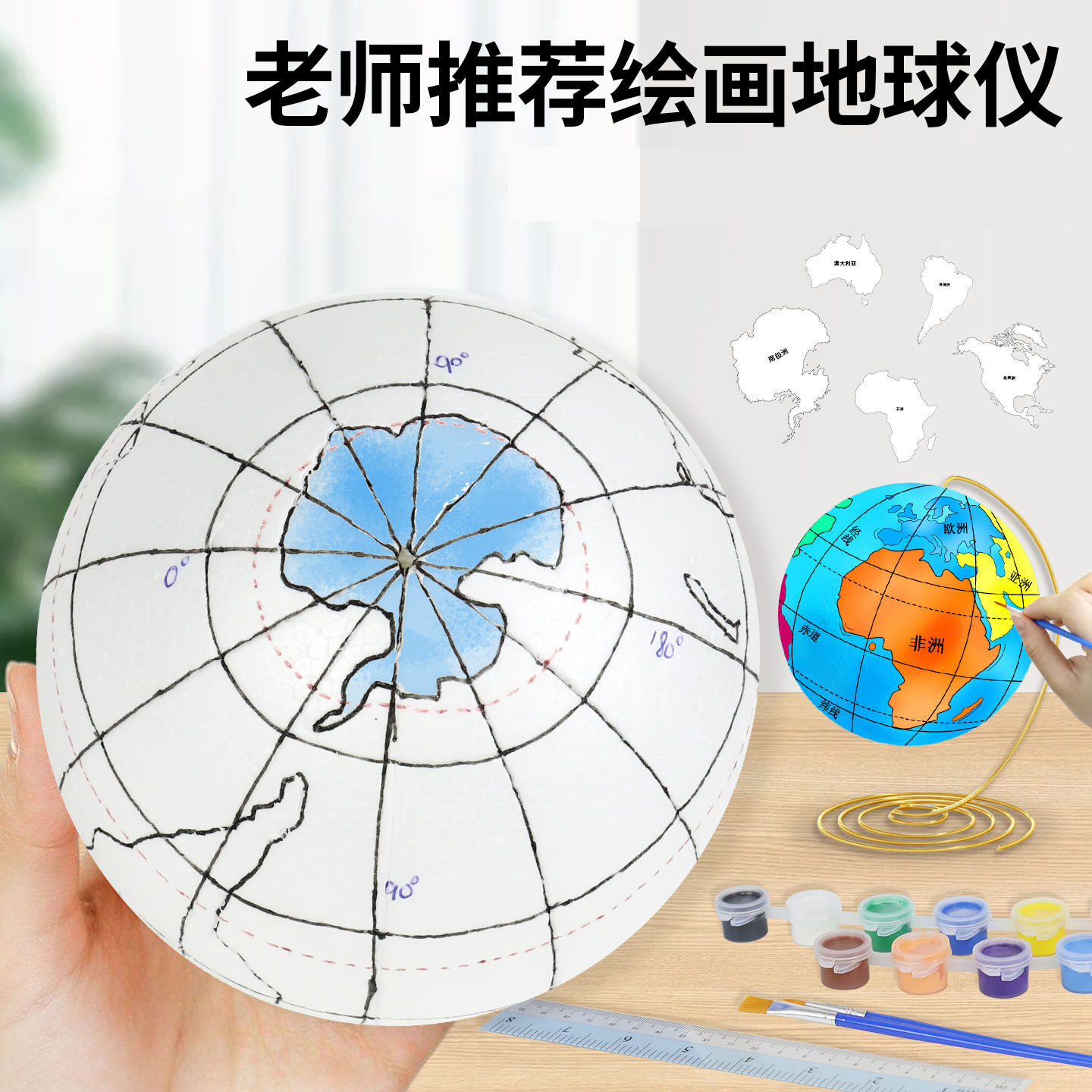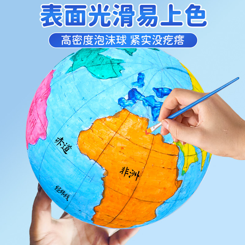 自制地球仪手工制作diy材料包泡沫球圆球小学初中生用3d立体手绘