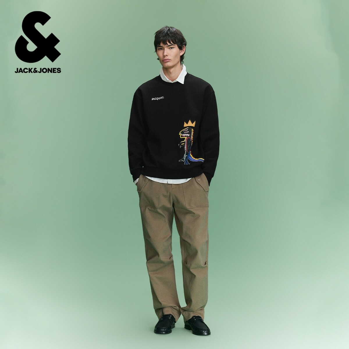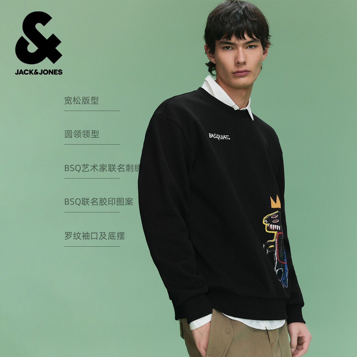 【BSQ联名】杰克琼斯男装春季新款趣味图案刺绣休闲宽松圆领卫衣