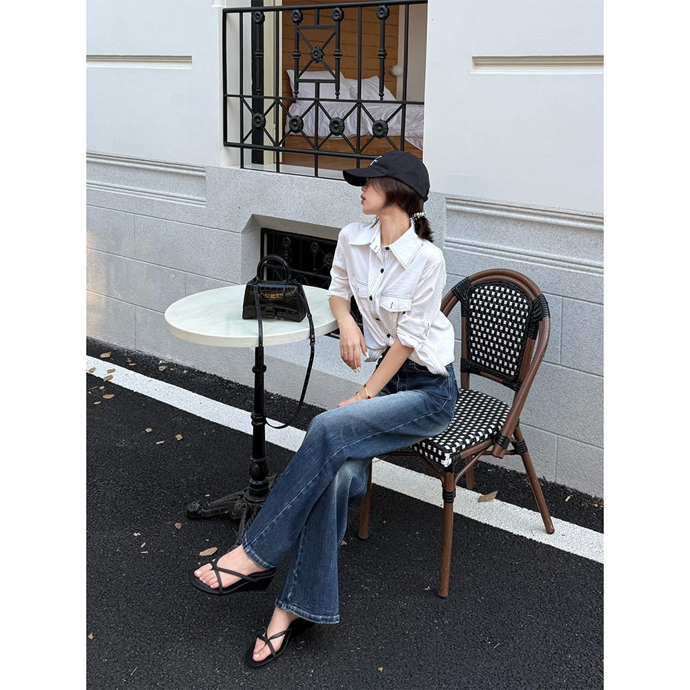 王家有鱼秋季2025新款显瘦不贴腿微喇裤女款