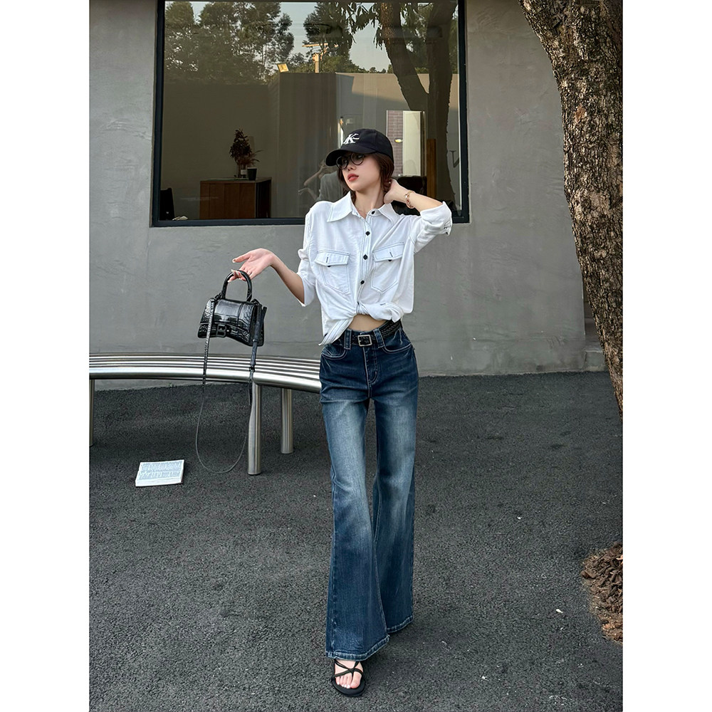 王家有鱼【古早蓝灰】2025秋季新款微喇牛仔裤中高腰不贴腿辣妹女