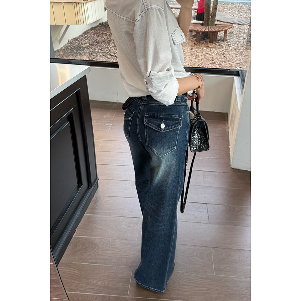 四面弹丹宁色牛仔阔腿裤25年新款宽松显瘦牛仔长裤89173