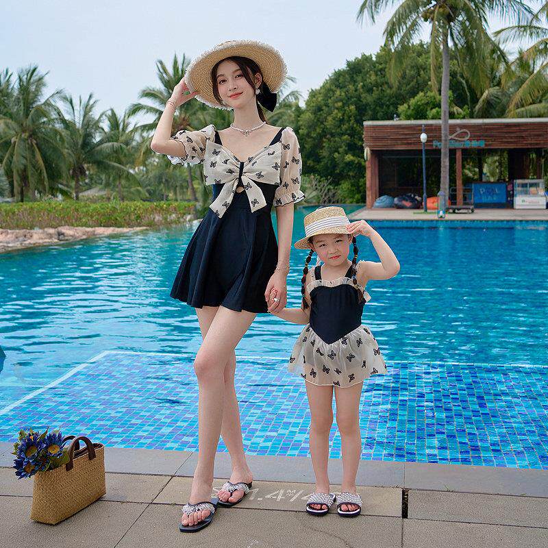 2025新款亲子泳衣母女连体裙式韩系ins甜美网红公主保守遮肉泳装