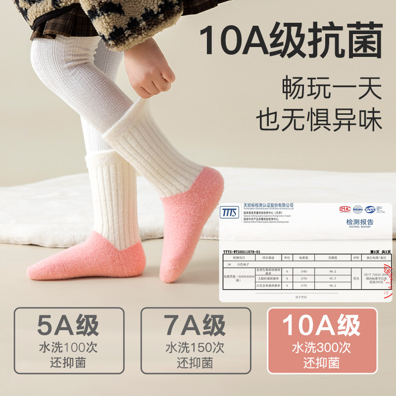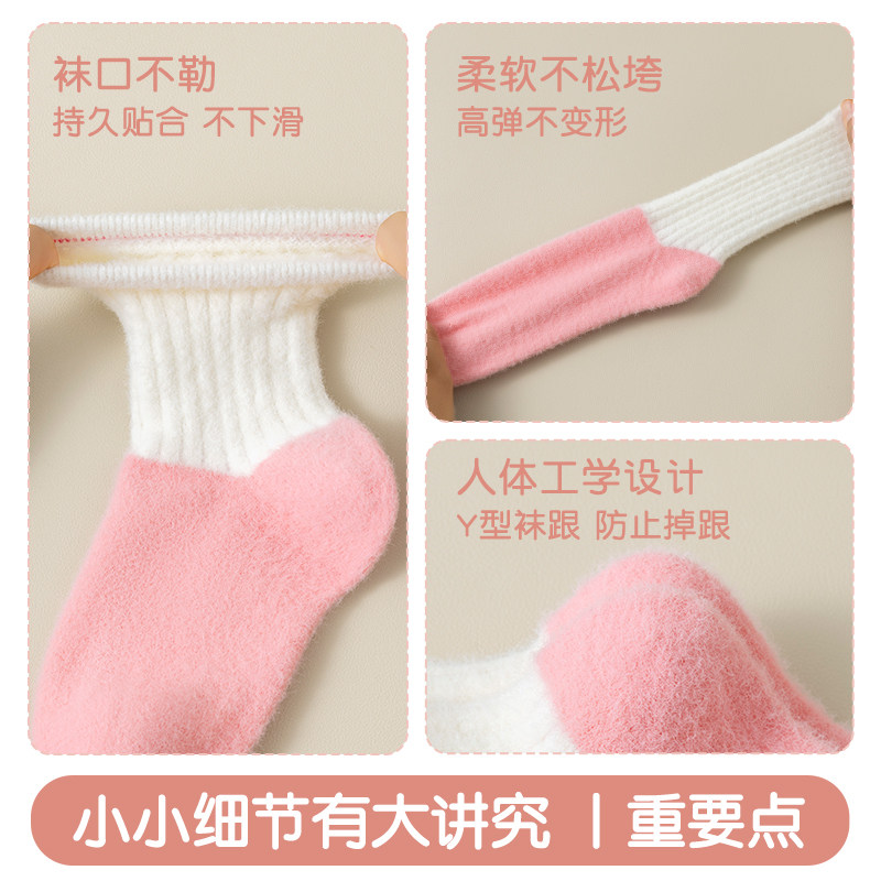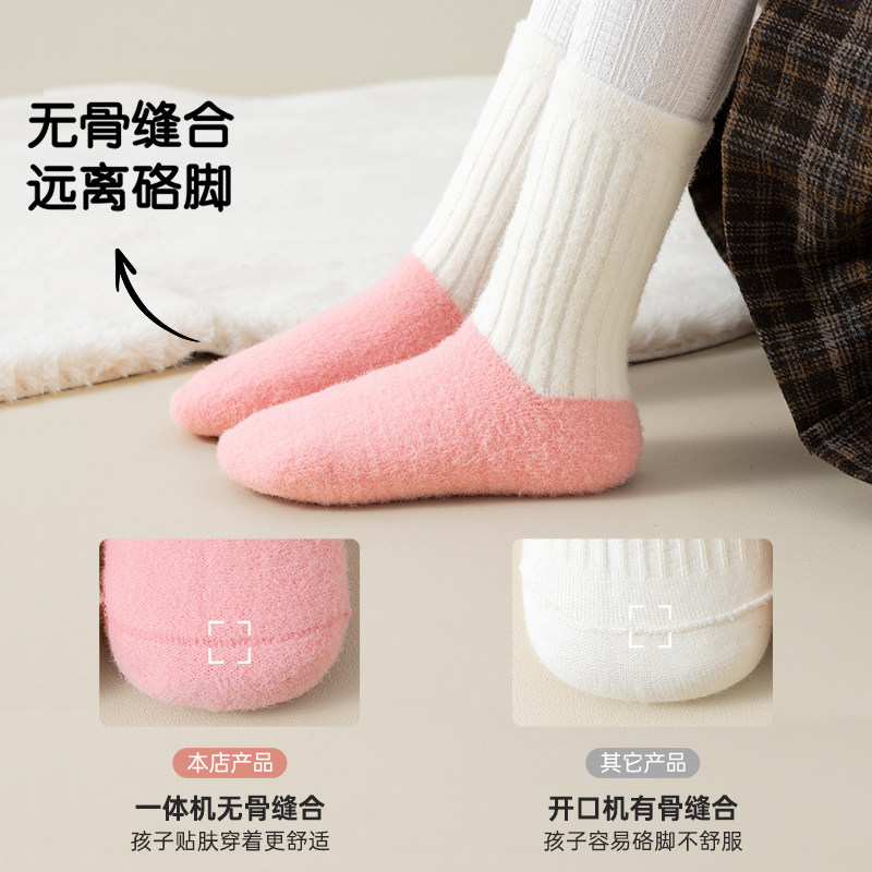 儿童袜子女童冬季加绒加厚秋冬澳绒中筒袜冬款保暖睡眠袜长筒地板
