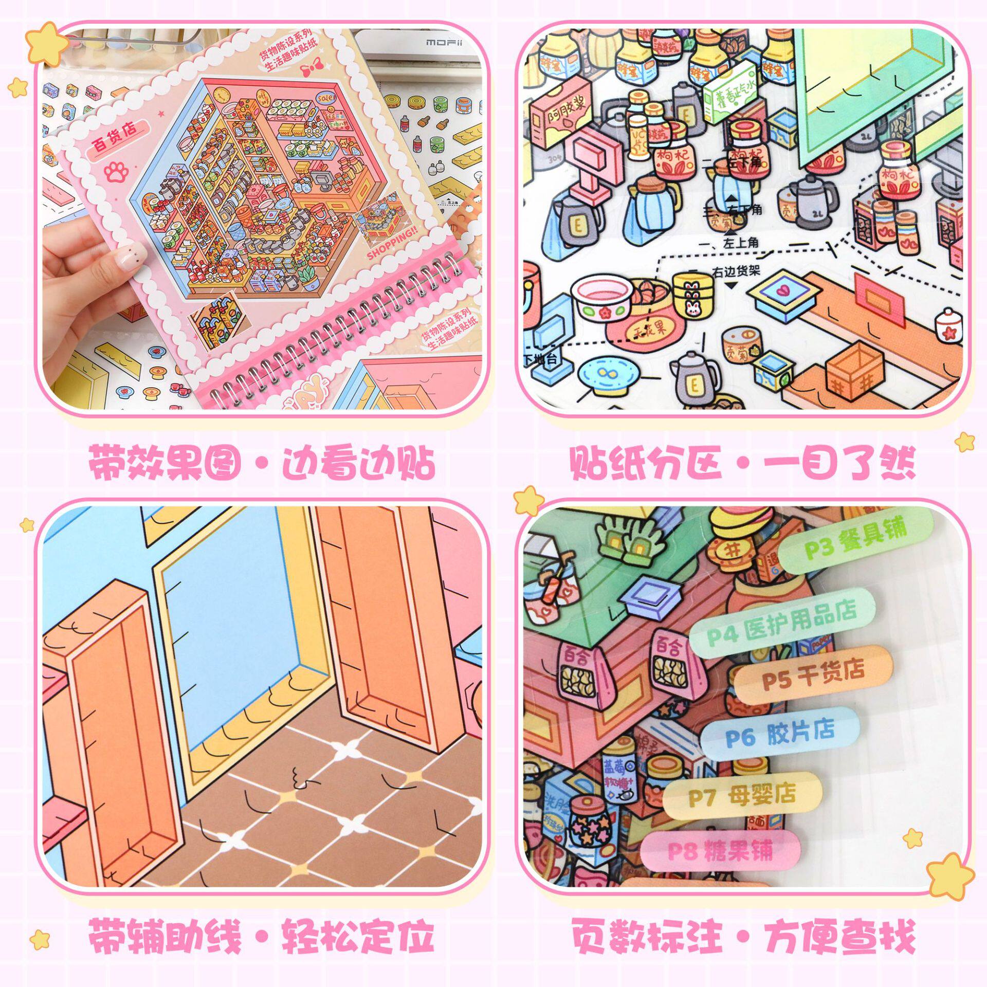 新款筑梦3d立体造景贴纸微缩场景合集本 大号版diy手工小屋手账贴儿童益智玩具素材贴画解压大版3D手账装饰贴