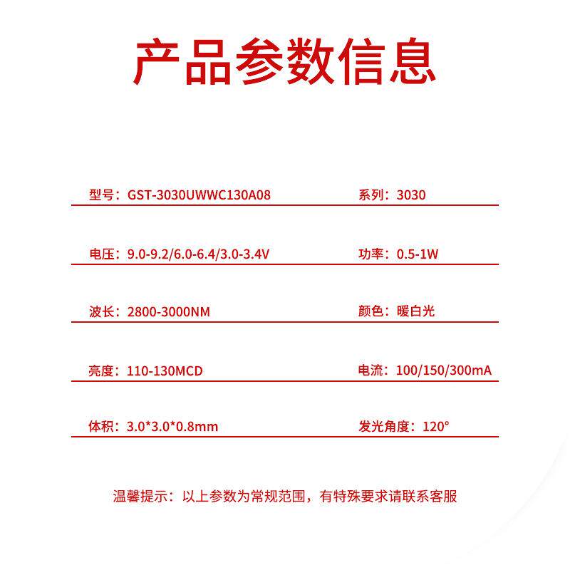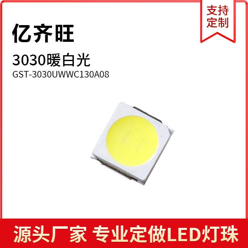 3030暖白光色灯贴片LED灯珠发光二极管3030超高亮1W金线铜支架