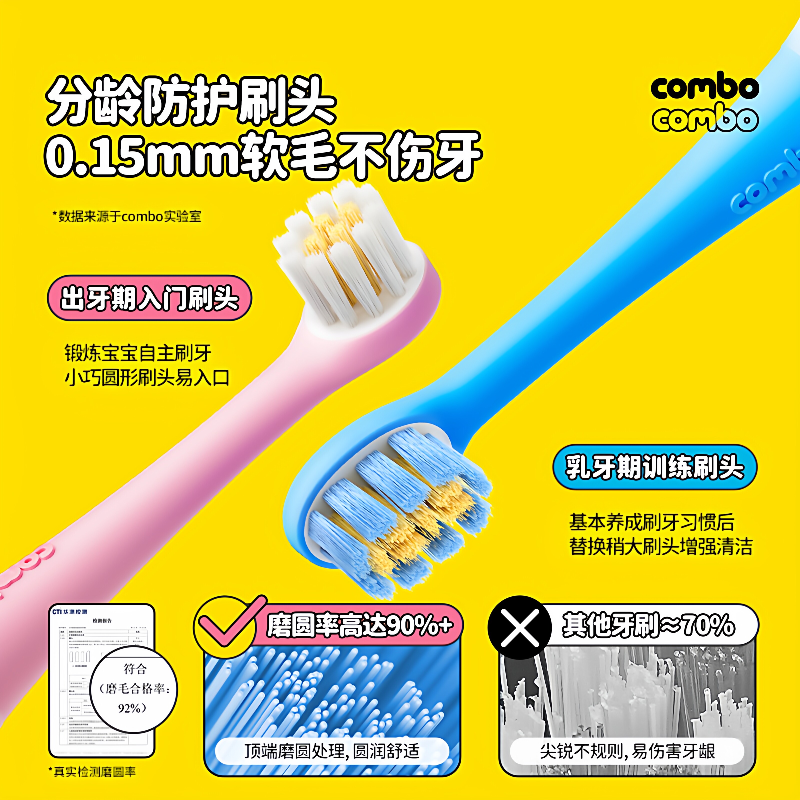 COMBO婴幼儿童牙刷软毛宝宝0到3-6训练含氟乳牙专用小孩【手动】