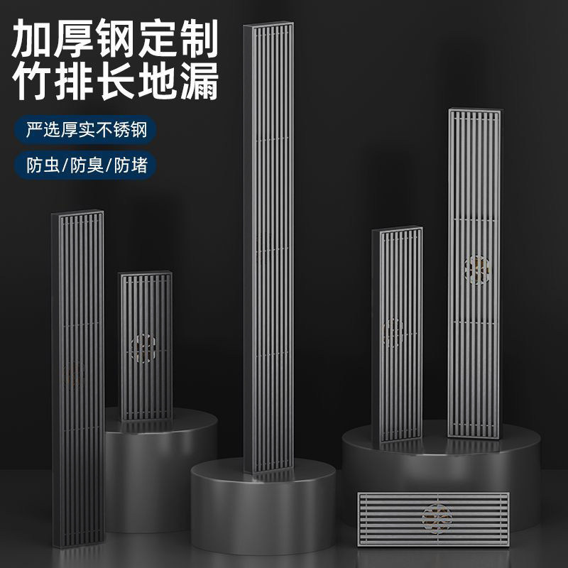 地漏长条型防臭枪灰304不锈钢卫生间加长方形全铜芯排水过滤网