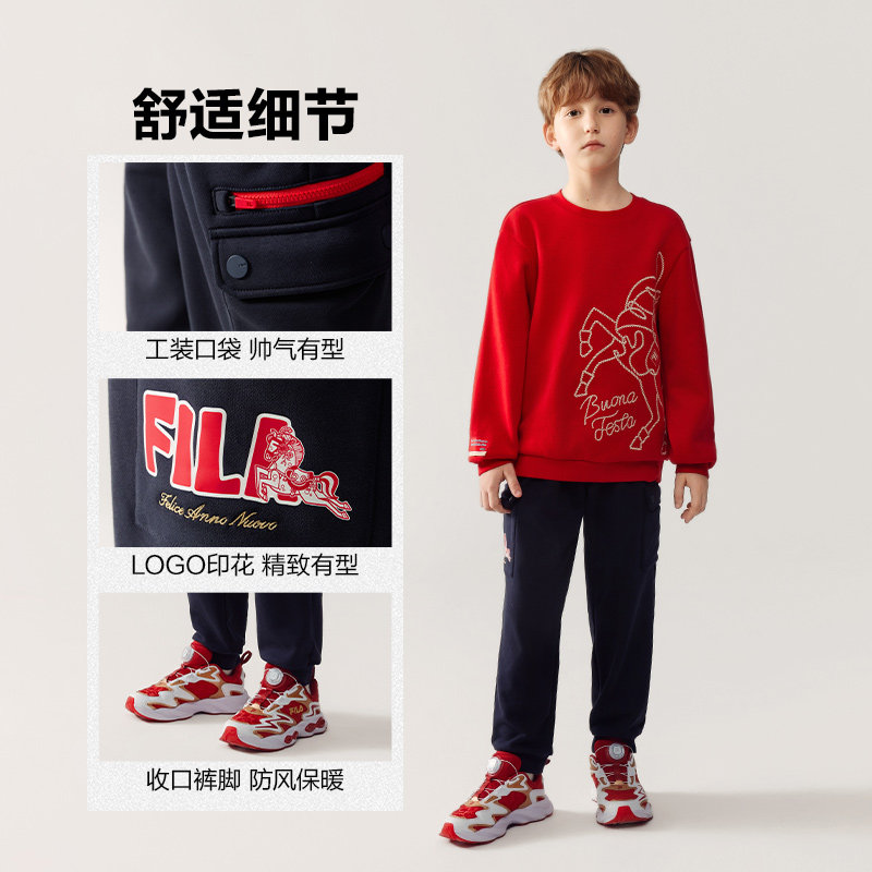 FILA KIDS斐乐童装男童针织长裤2026春季新款儿童新年款休闲裤