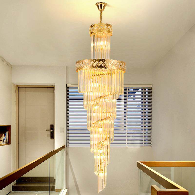 复式楼大吊灯别墅客厅中空简约楼中楼跃层轻奢长水晶旋转楼梯灯