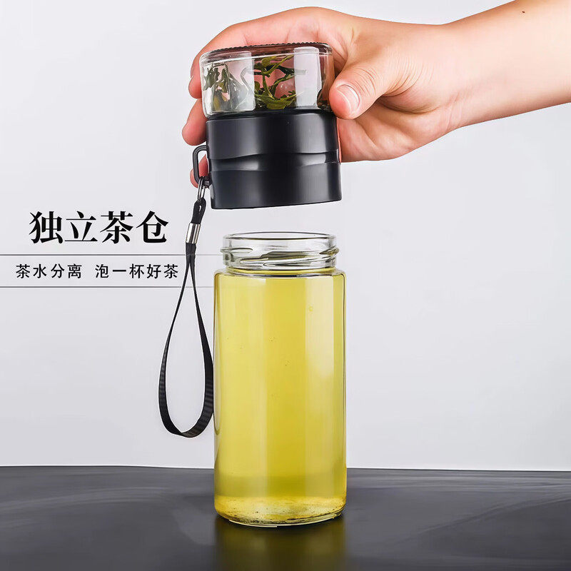 宝选一键开盖水杯车载双层玻璃杯男士泡茶保温速开茶水分离杯茶杯