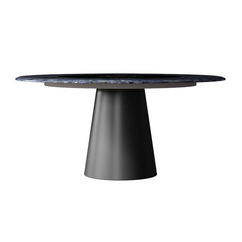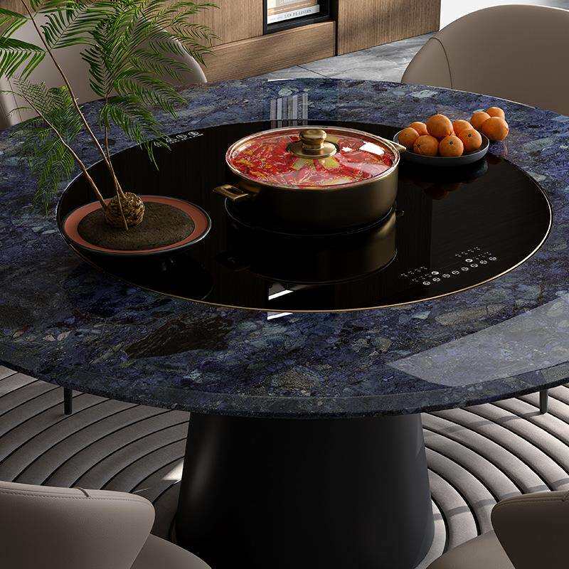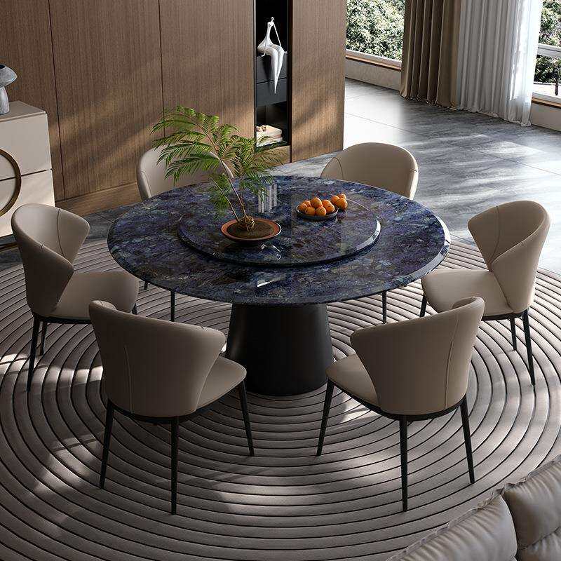 微晶石圆餐桌轻奢别墅奢石圆形内嵌式转盘餐桌椅组合圆桌暖菜转盘