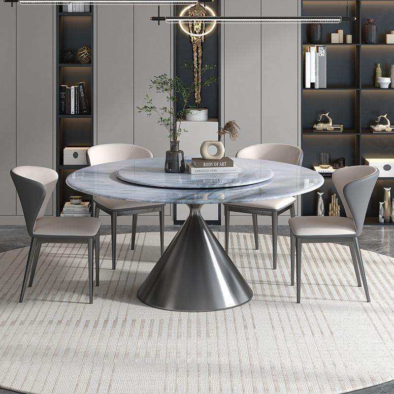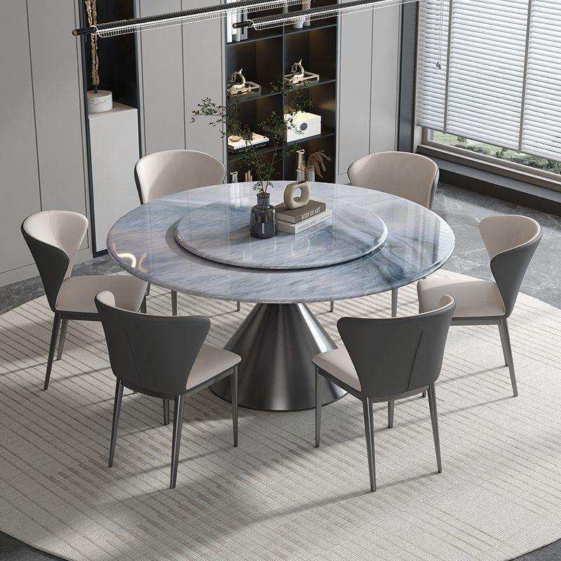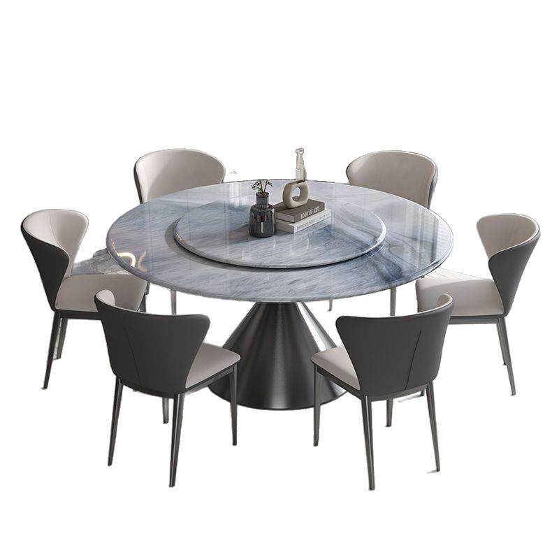 现代圆形超晶石餐桌椅组合家用小户型岩板饭桌微晶石大理石送转盘