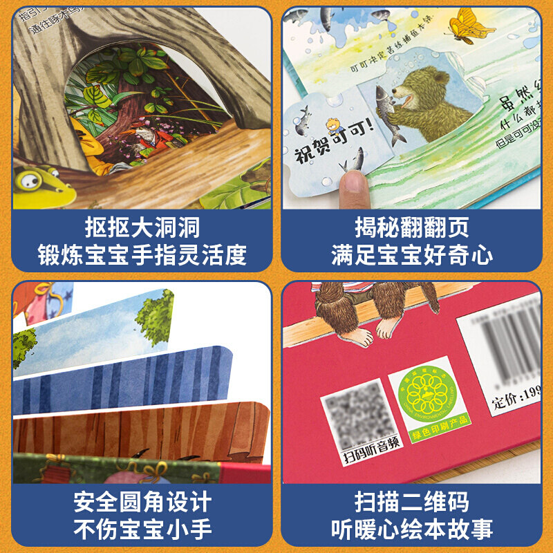 好玩的认知洞洞书全8册熊孩子的奇趣洞洞书婴儿早教书籍宝宝撕不烂认知绘本适合幼儿看的书儿童书本6个月婴幼儿启蒙图书