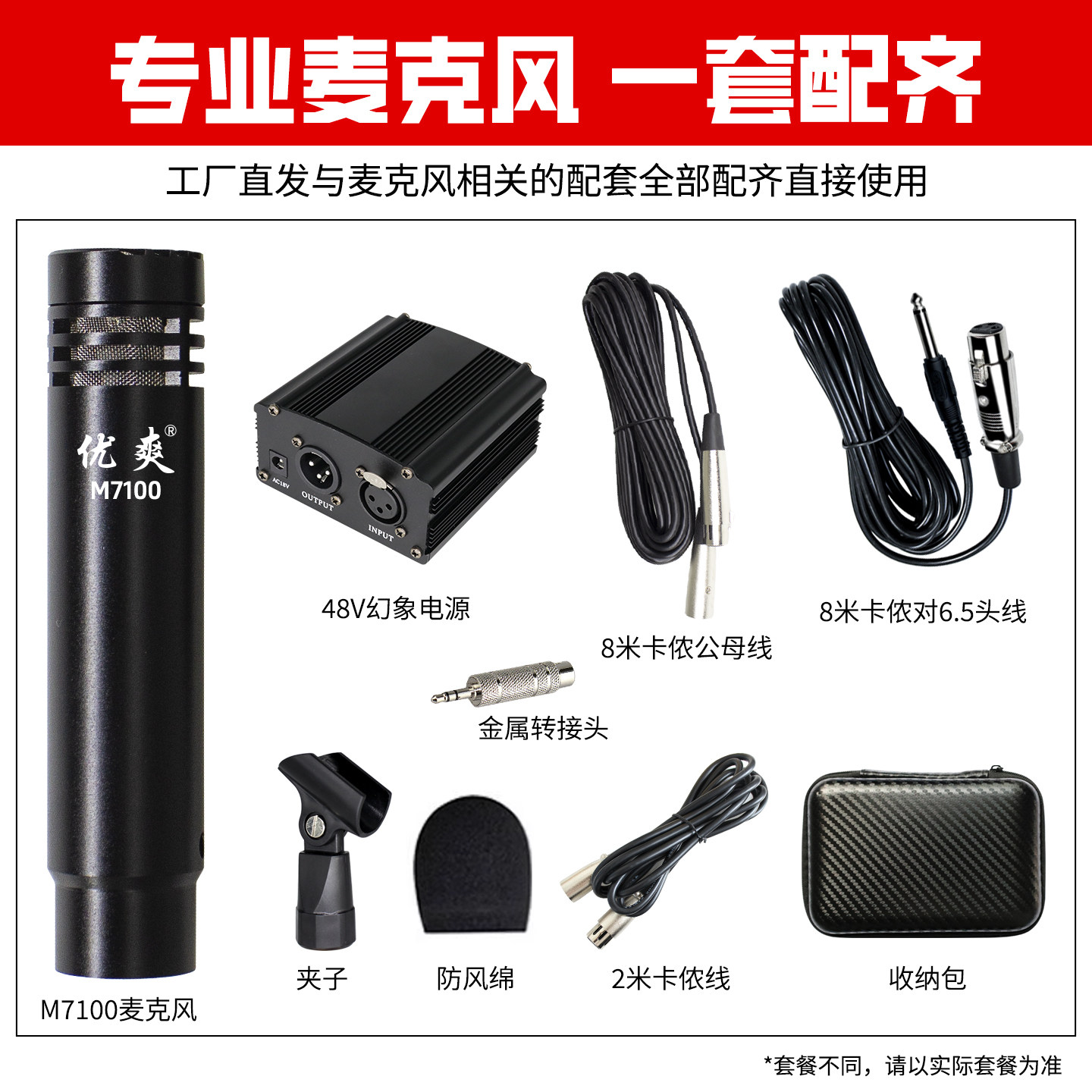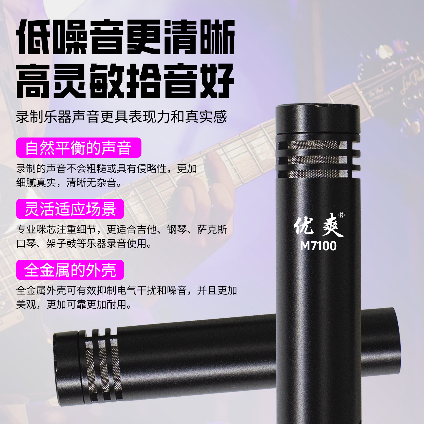 优爽M7100 乐器专用电容麦克风小振膜吉他录音麦克风钢琴立体声源