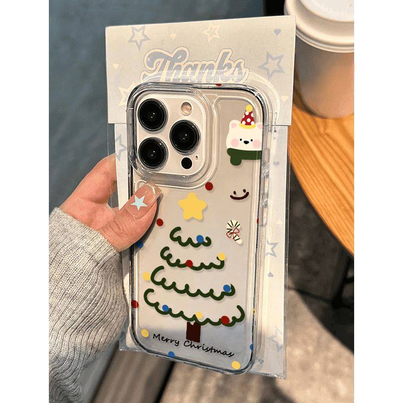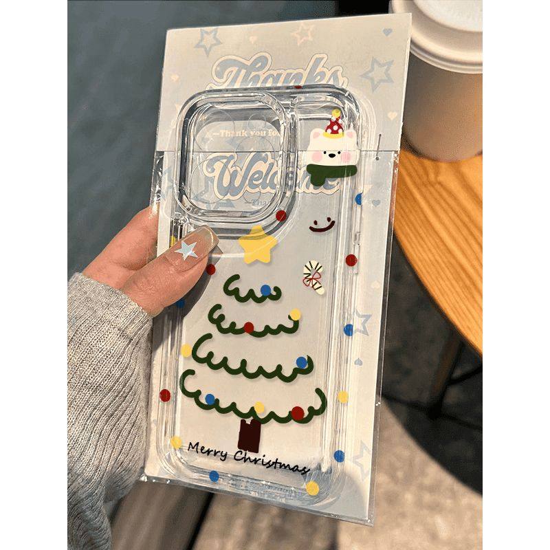 圣诞树透明手机壳iPhone17保护套可爱卡通小熊装饰创意设计感适用苹果16小米15/14/13/12/11华为oppo荣耀vivo