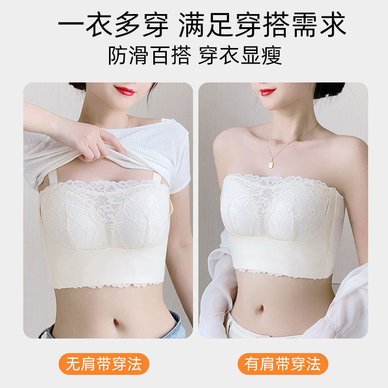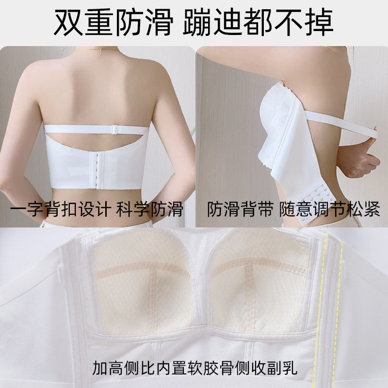 菇娘家稳稳杯无肩带内衣女大胸美背抹胸裹胸隐形无痕聚拢防滑文胸