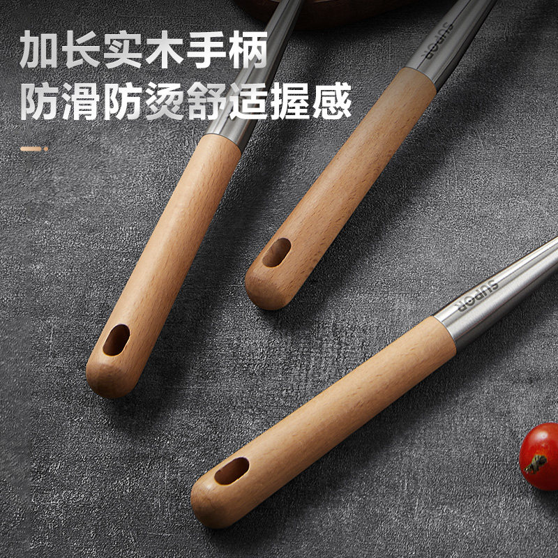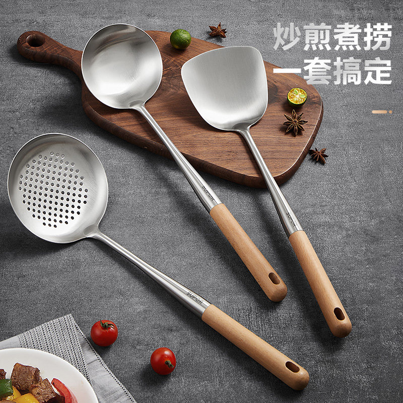 苏泊尔锅铲304不锈钢加厚炒菜铲子汤勺家用厨具榉木炒勺套装铁铲