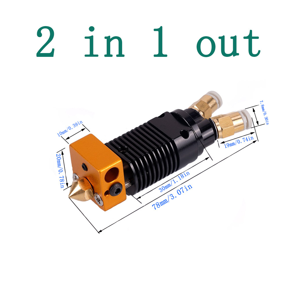 DB-3D打印机配件Ender3/CR10 CR6SE 2进1出单喷嘴热端挤出0.4喷嘴