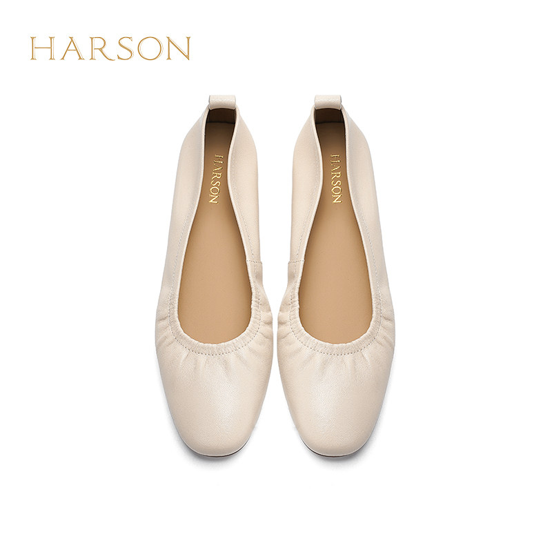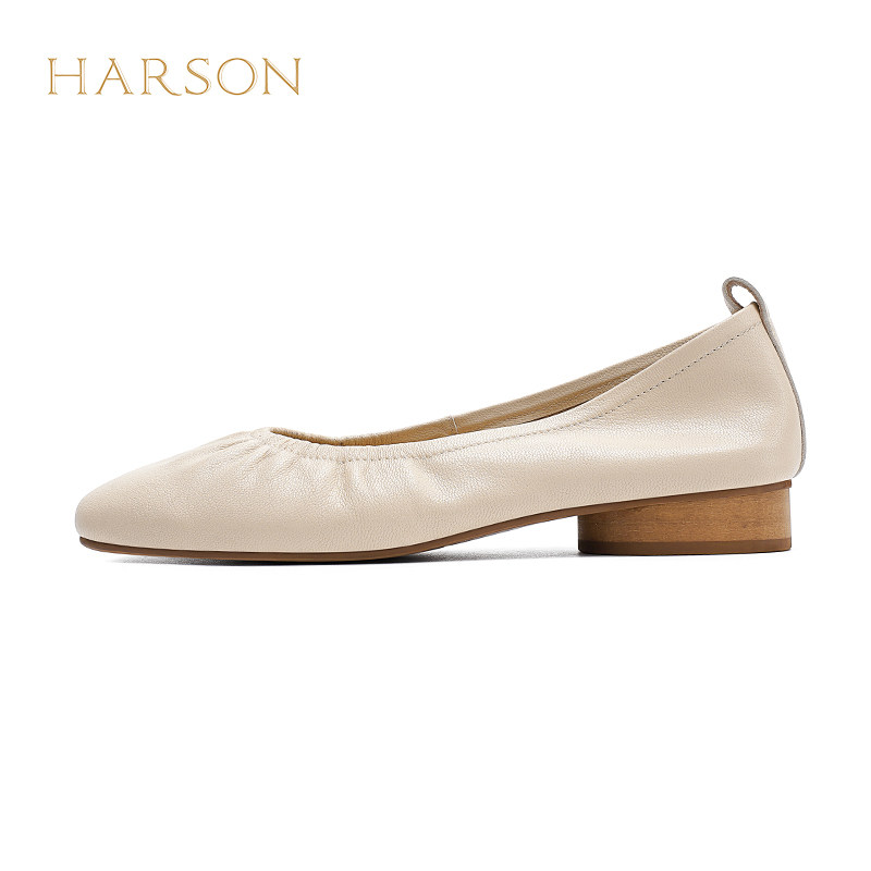 哈森法式真皮软底乐福鞋女舒适低跟豆豆鞋简约2026新款HWS260167
