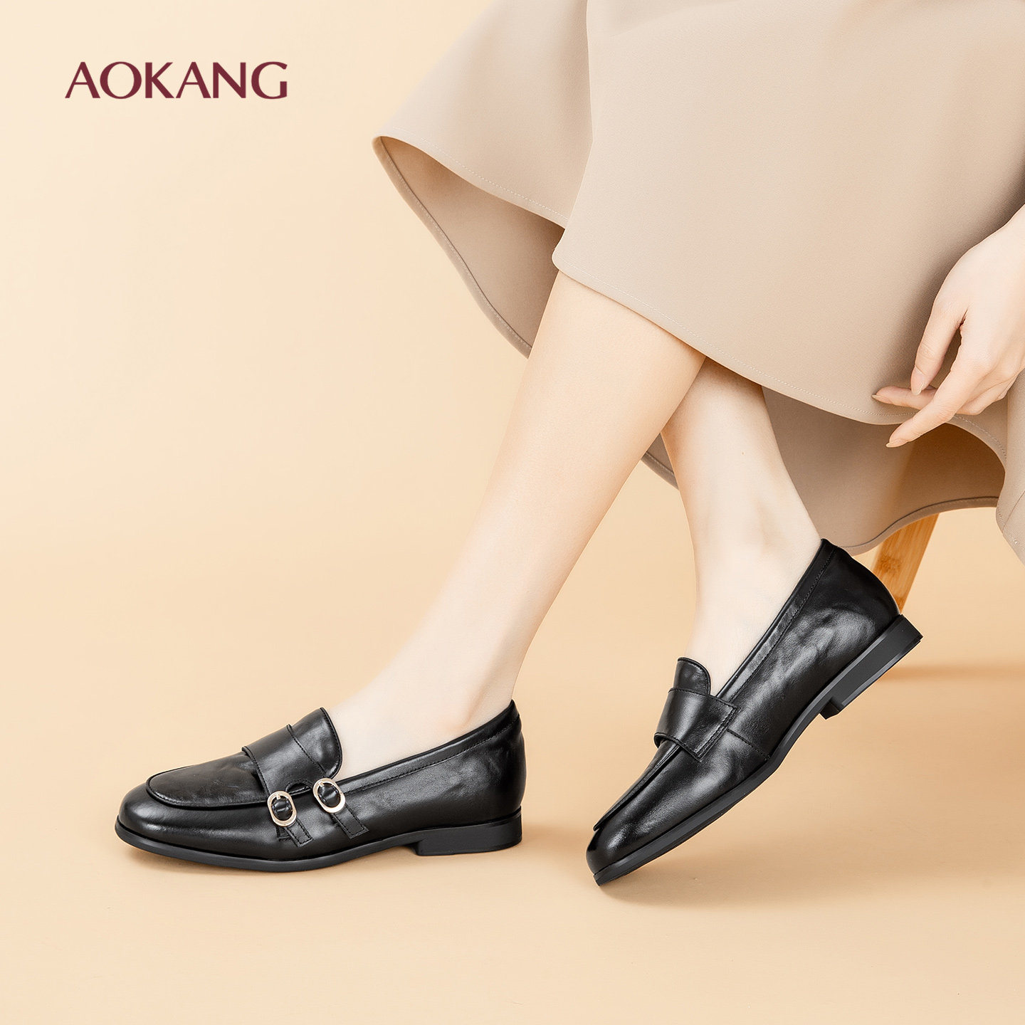 奥康 女鞋舒适百搭时尚简约平底豆豆鞋2026春季新款英伦风乐福鞋N