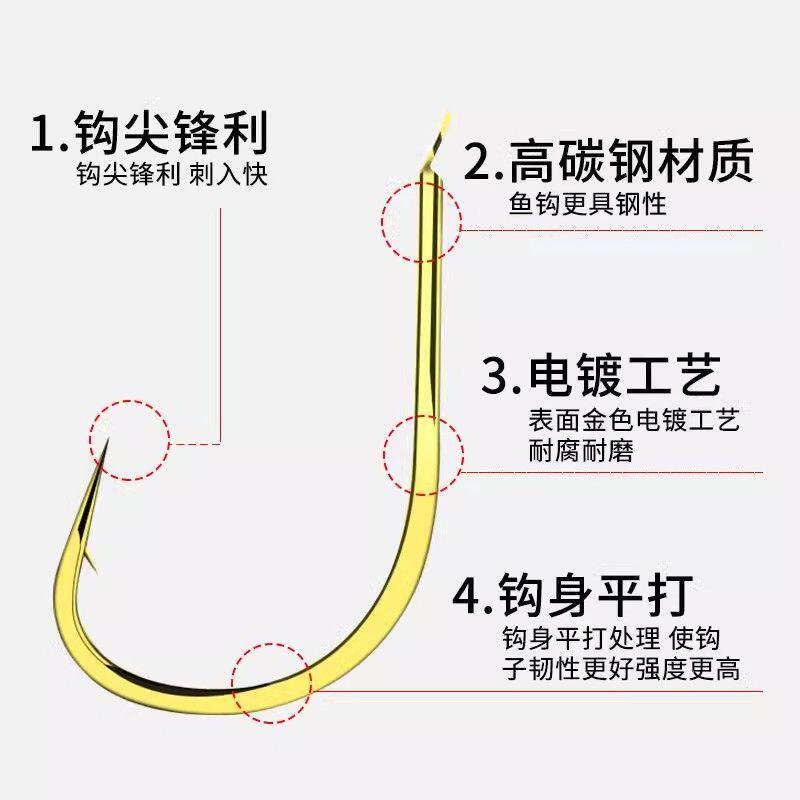金海夕鱼钩散钩1#-13#散装高碳钢平打进口有/无倒刺野钓筏钓
