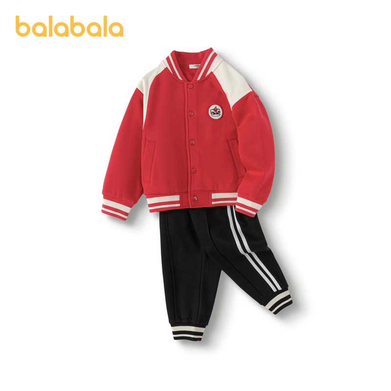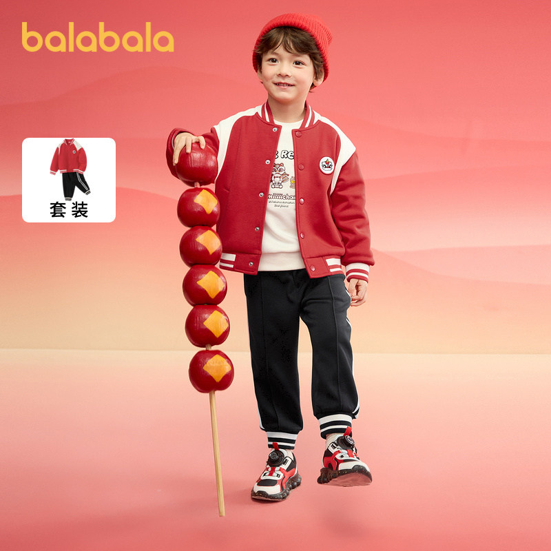 巴拉巴拉童装儿童套装男童棒球服两件套2025新春秋刺绣加绒两件套