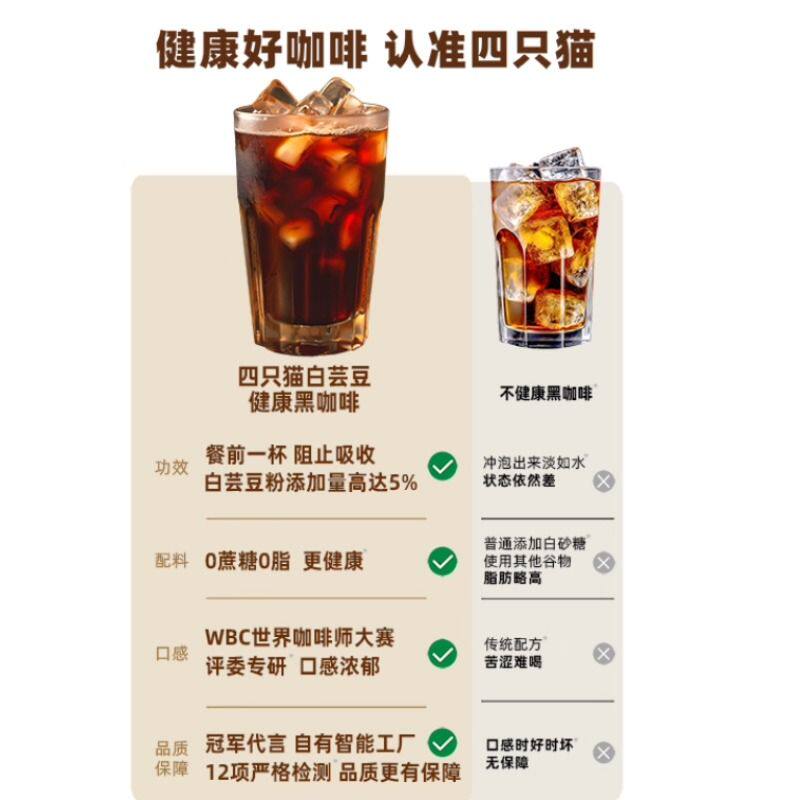 四只猫 云南高山小粒0蔗糖0脂肪美式提神健身燃减提神学生黑咖啡