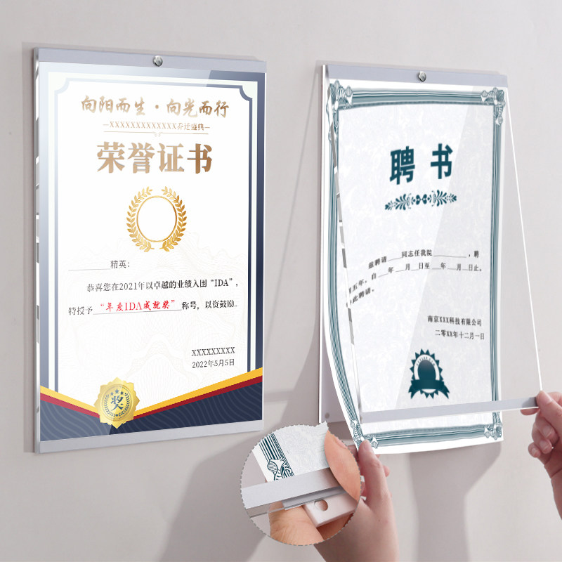 亚克力强磁标价牌透明展示牌强磁面板贴墙价格签台卡台签磁性平贴免打孔贴a4专利证书框师资形象展示墙