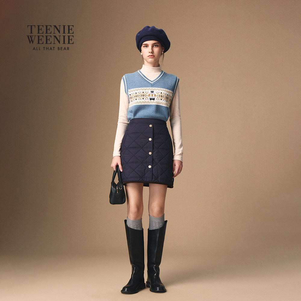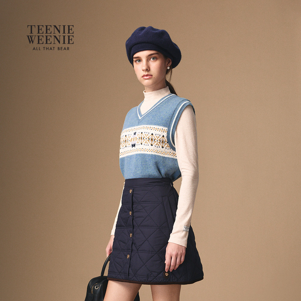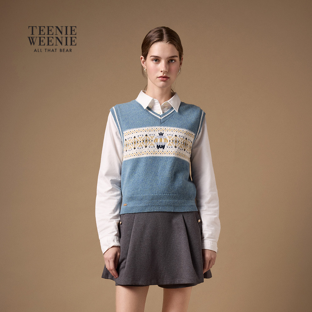 TeenieWeenie小熊女装毛针织衫25冬季复古V领费尔岛提花毛衣背心