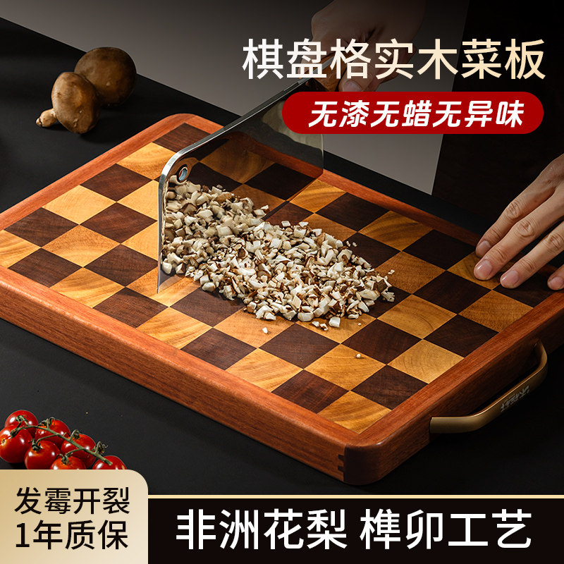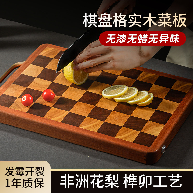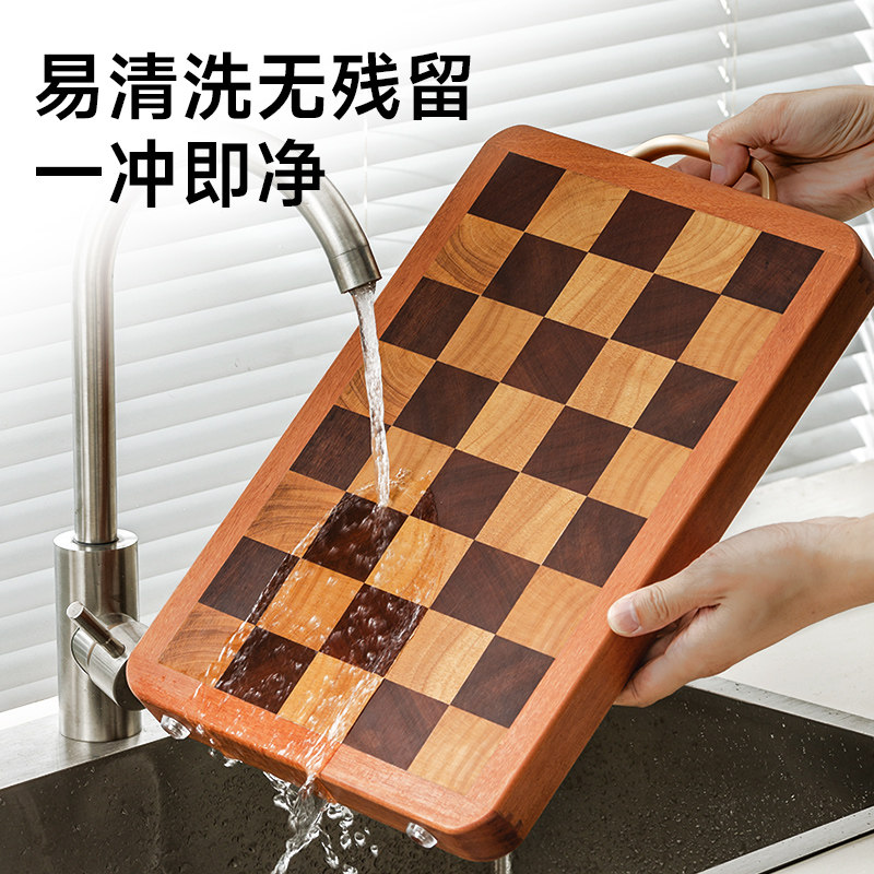 木雅轩榫卯棋盘格菜板防霉抗菌家用实木砧板双面切菜案板厨房专用