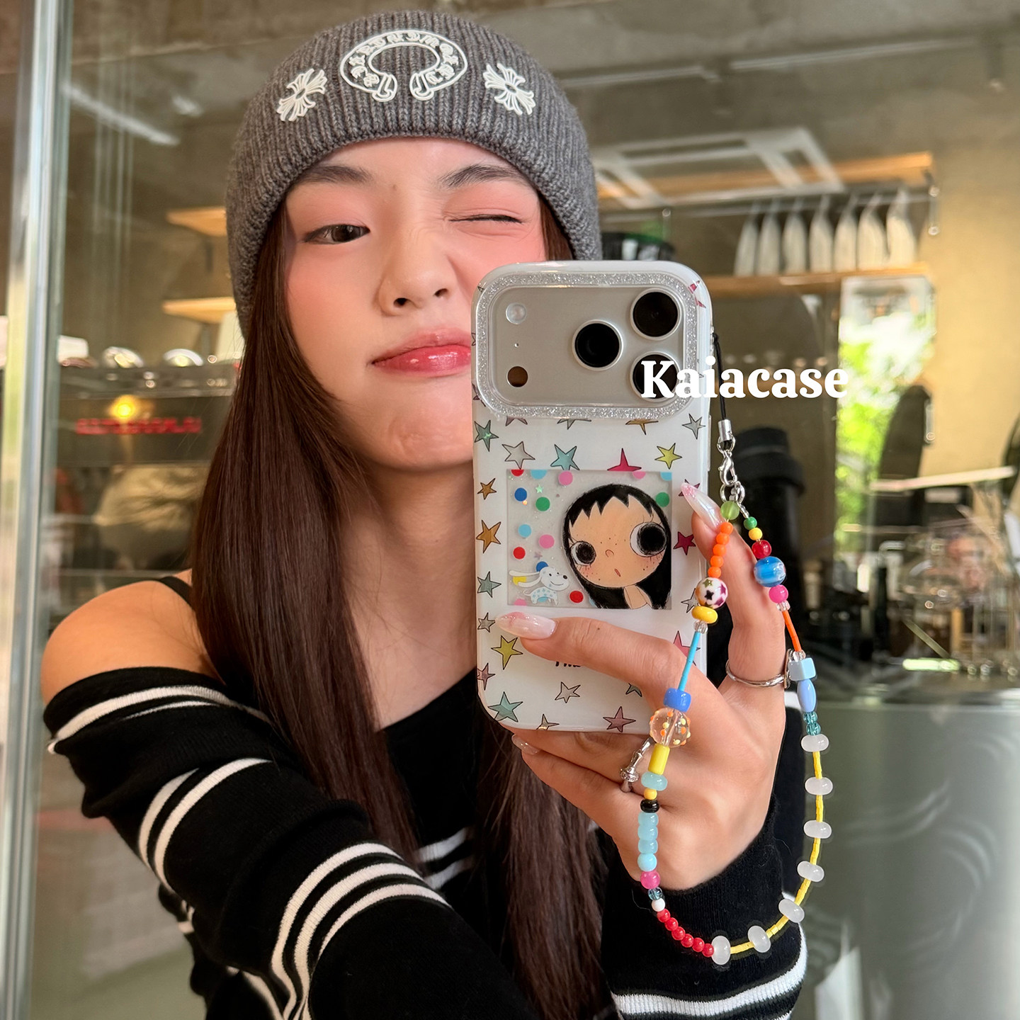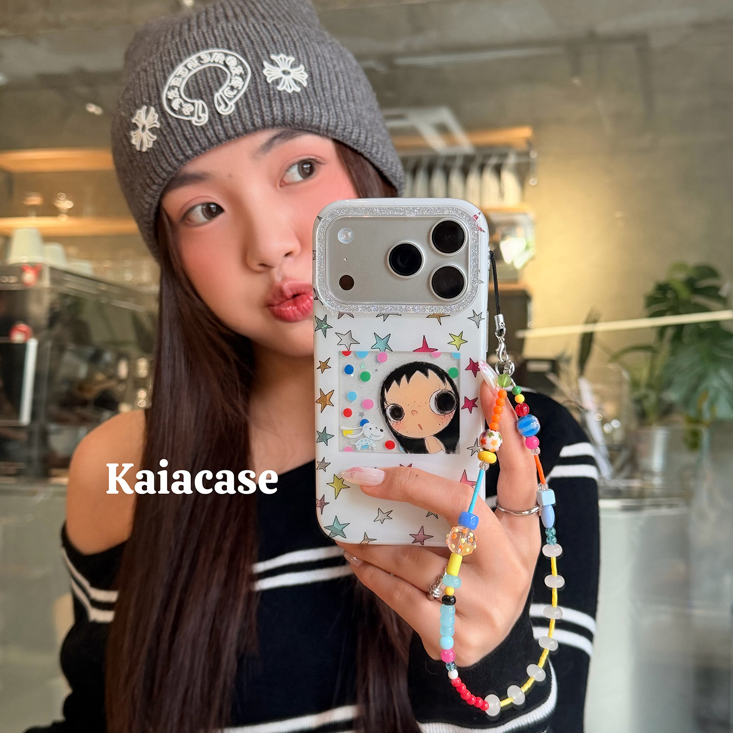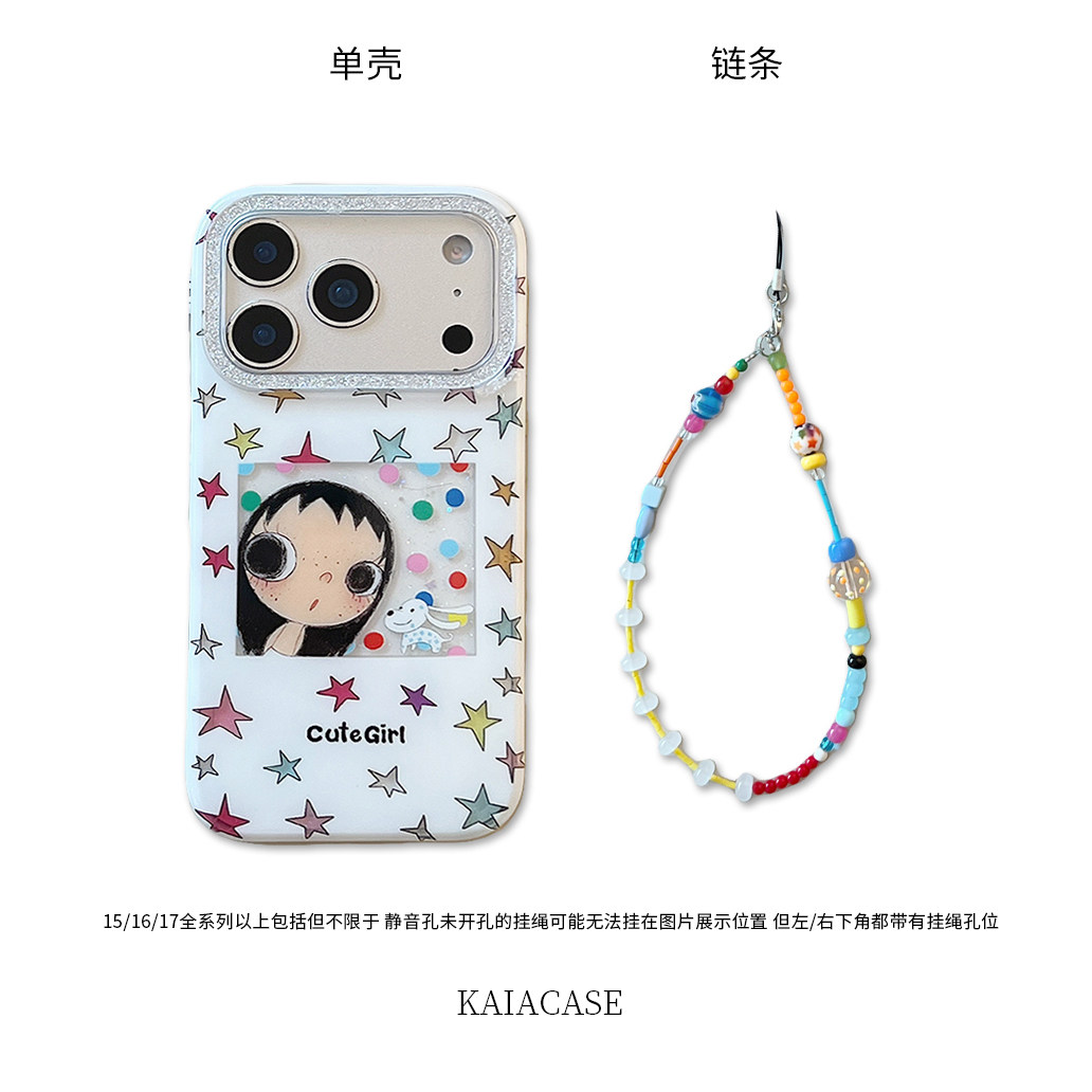 kaia少女心ins彩色星星女孩狗狗适用苹果17promax手机壳iphone16pro新款13女14pro带链条15pro全包防摔手机套