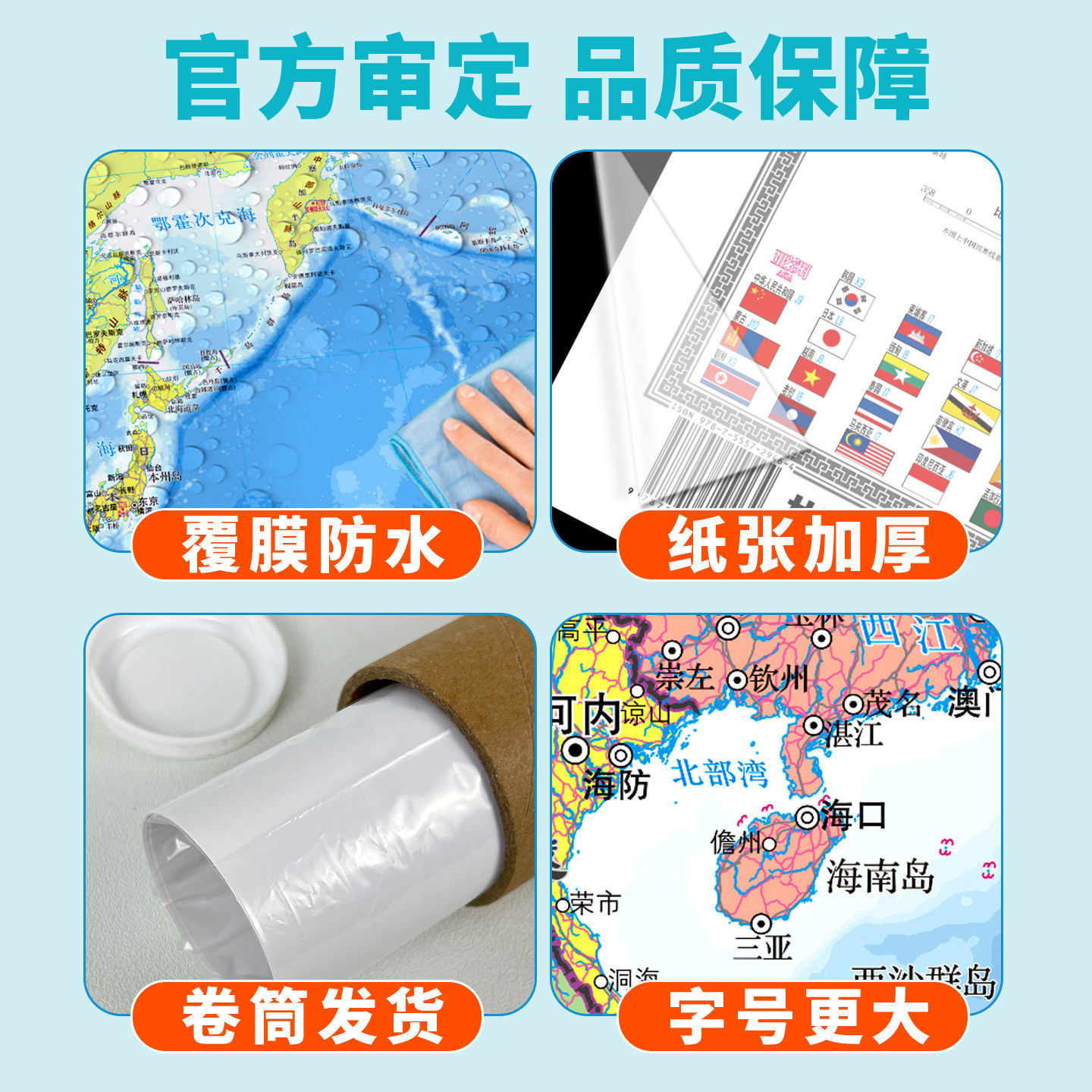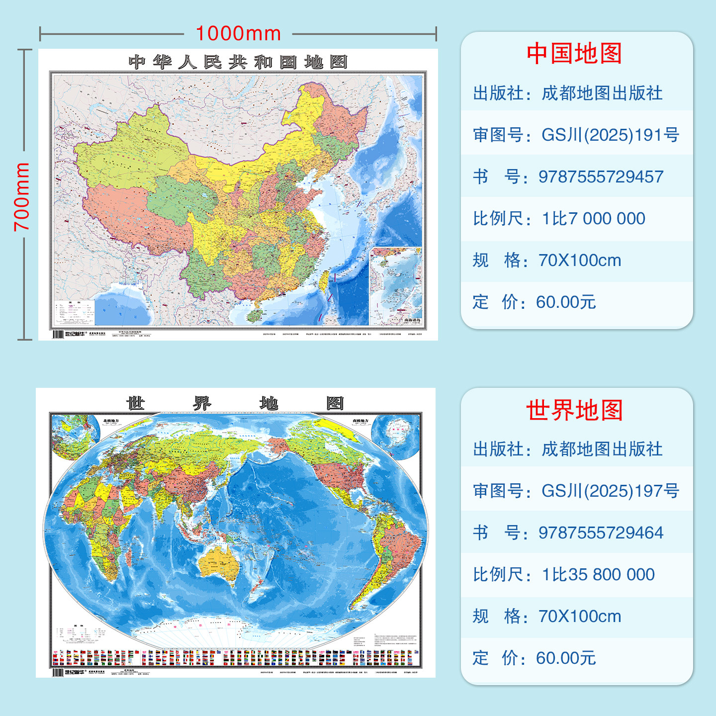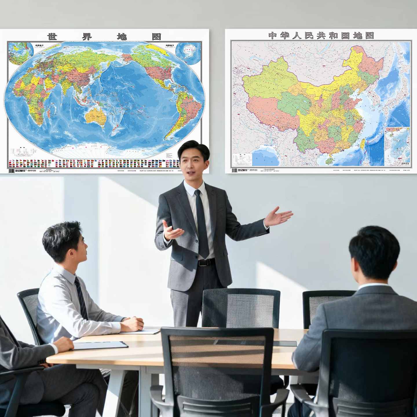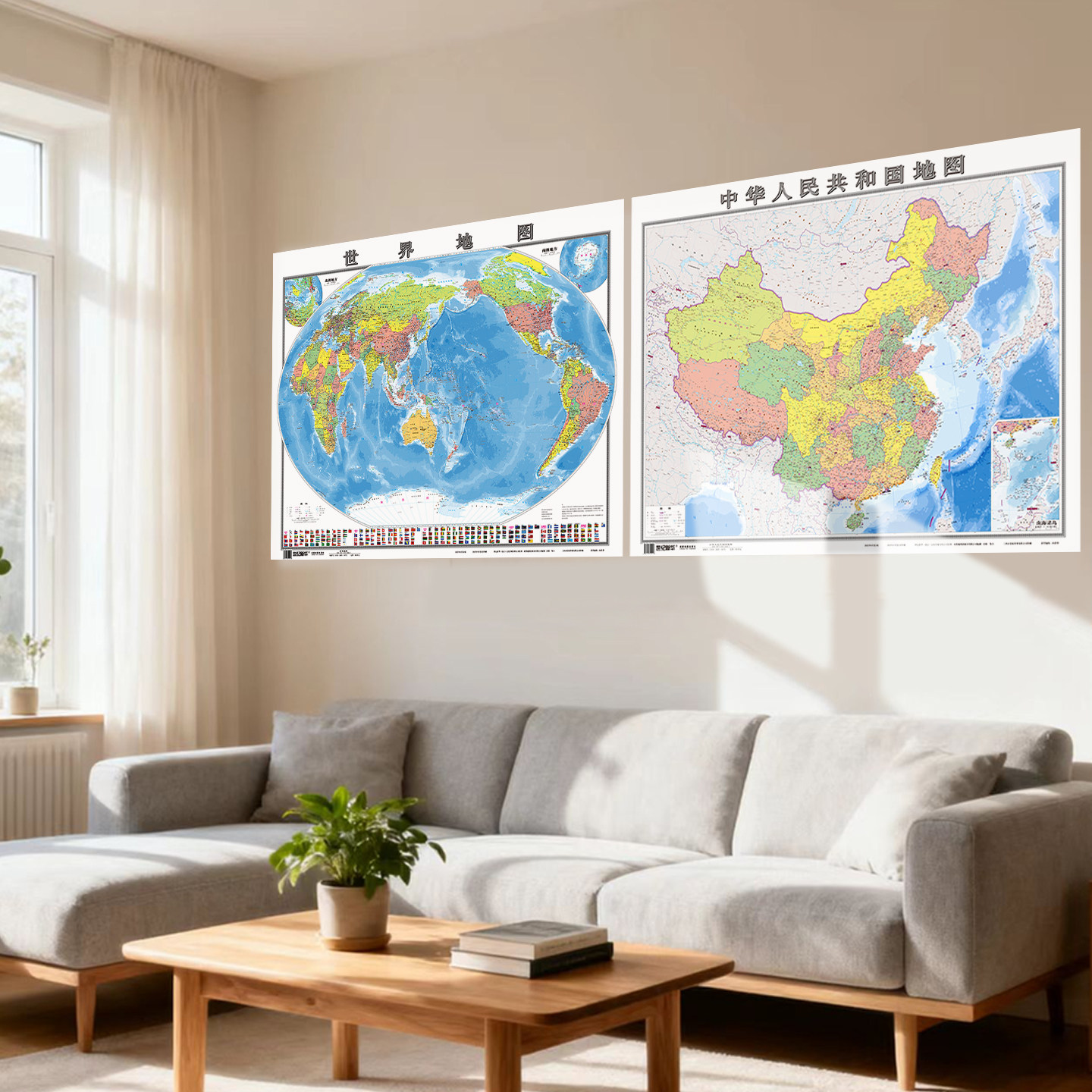 【中国地图出版社 高清2张】2025年新版中国地图和世界地图学生专用版办公室家庭客厅挂图背景墙全国大尺寸墙贴挂画墙面装饰画
