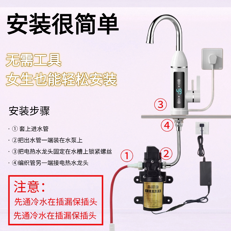 厨房自吸电热水龙头自动上水抽水泵智能加热水龙头供水泵自动启停