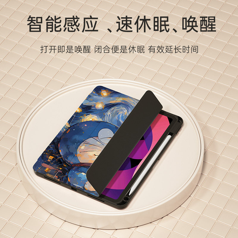 适用ipad12保护壳新款mini7平板保护套air8亚克力ipadpro防弯air7/6/5带笔槽第10代三折13英寸卡通哆啦A梦11