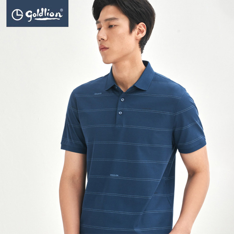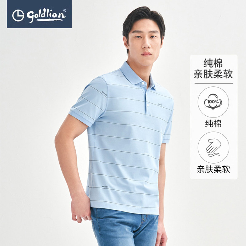 金利来2025新款男士短袖T恤男珠地纯棉百搭条纹翻领商务休闲POLO