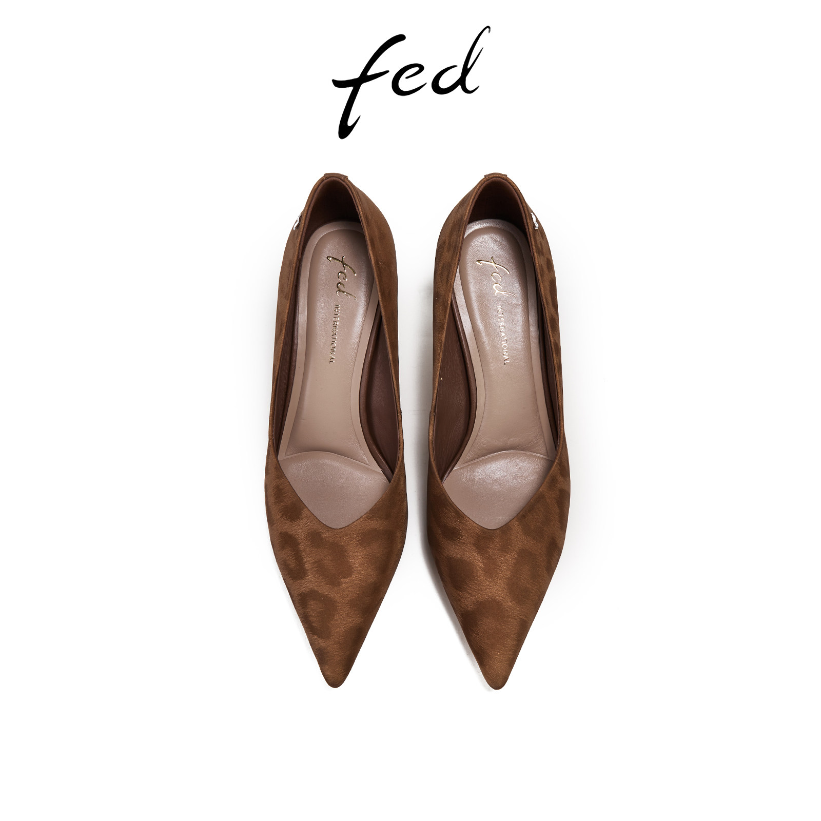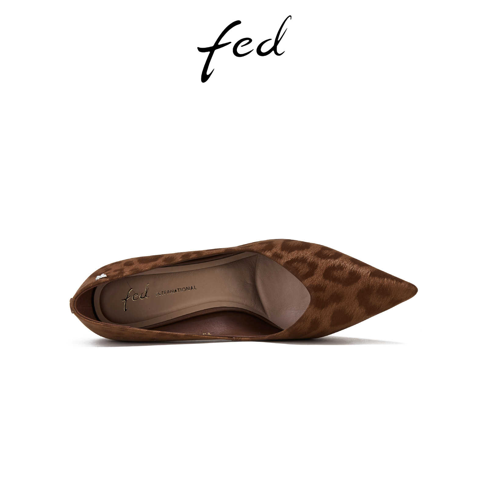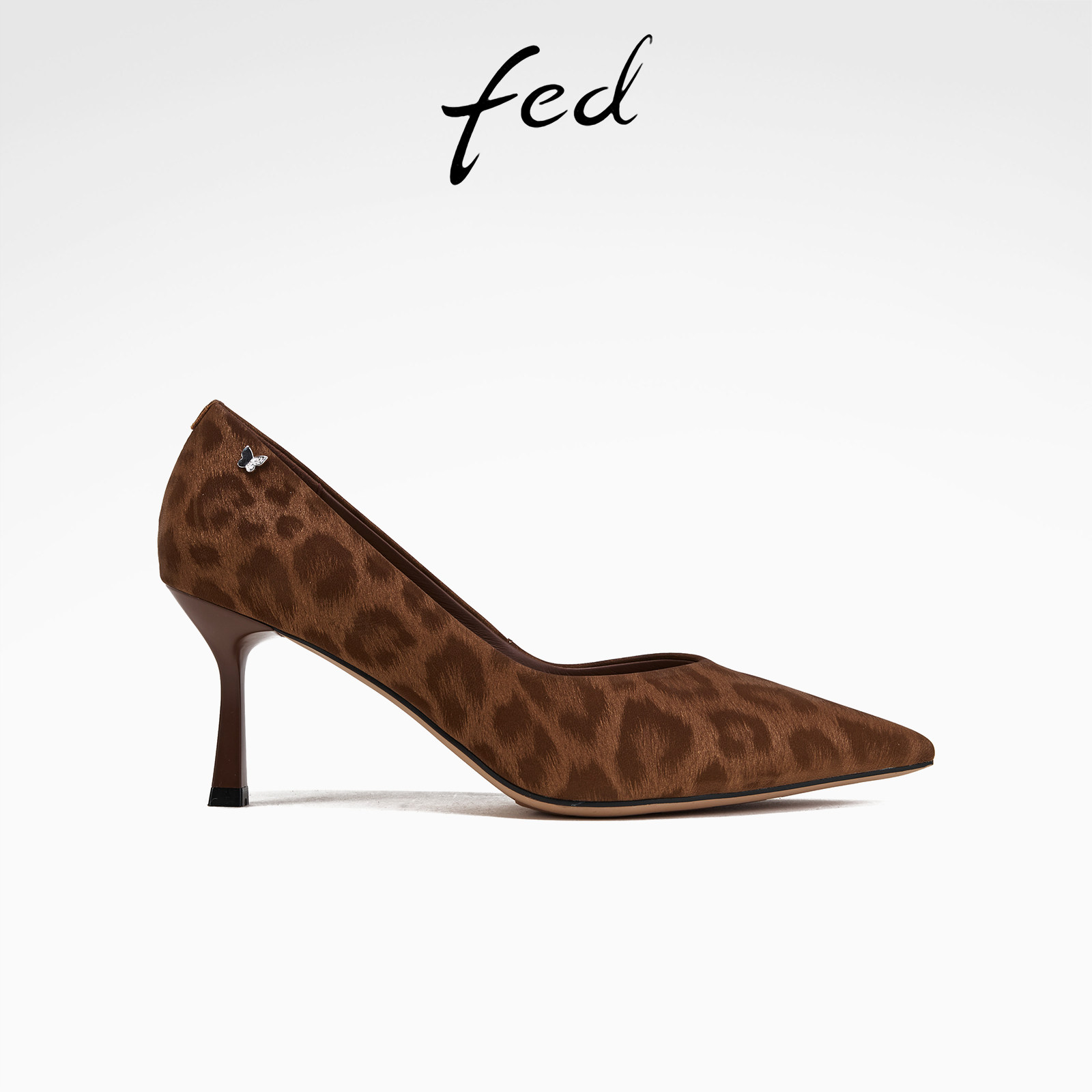 fed细跟高跟鞋春季新款女鞋一脚蹬豹纹浅口单鞋女款S0306-ZCA731