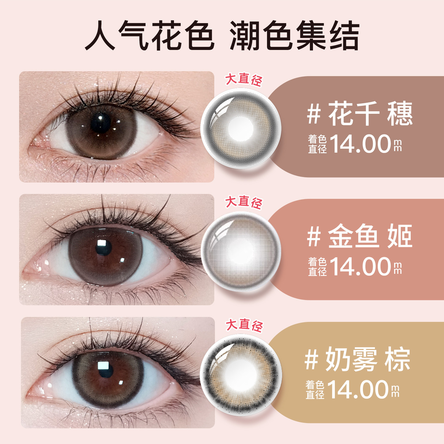 【大直径】绮芙莉美瞳日抛10片自然彩色棕隐形眼镜官方正品旗舰店