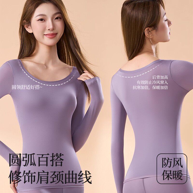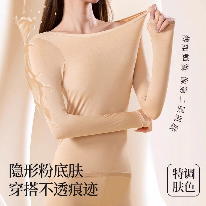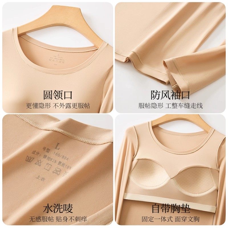 秋冬季超薄保暖内衣女士玻尿酸美肤肌底衣带胸垫无痕打底套装上衣