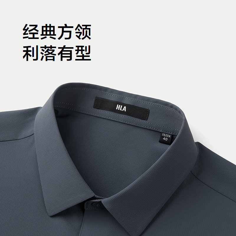HLA/海澜之家条纹提花纯色短袖衬衫春夏无痕科技休闲衬衣男